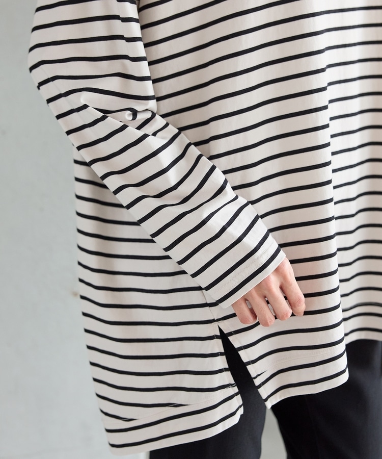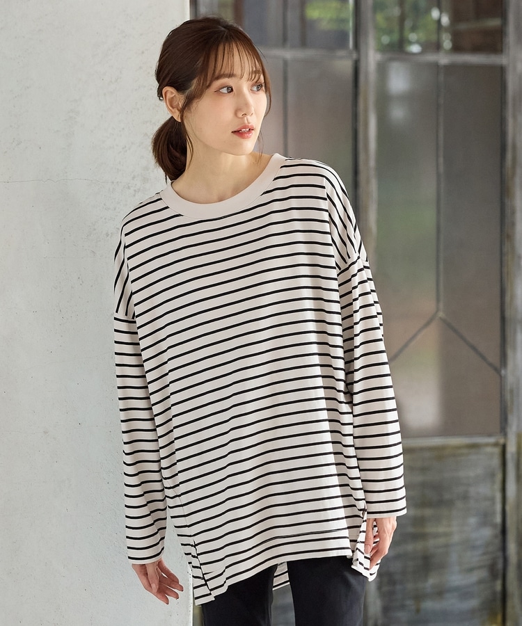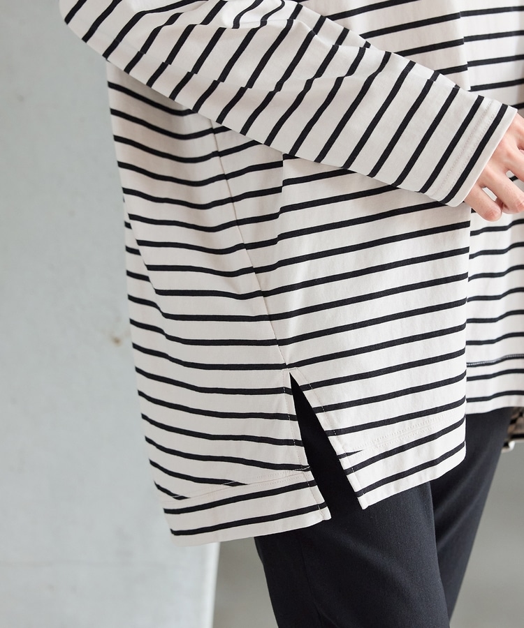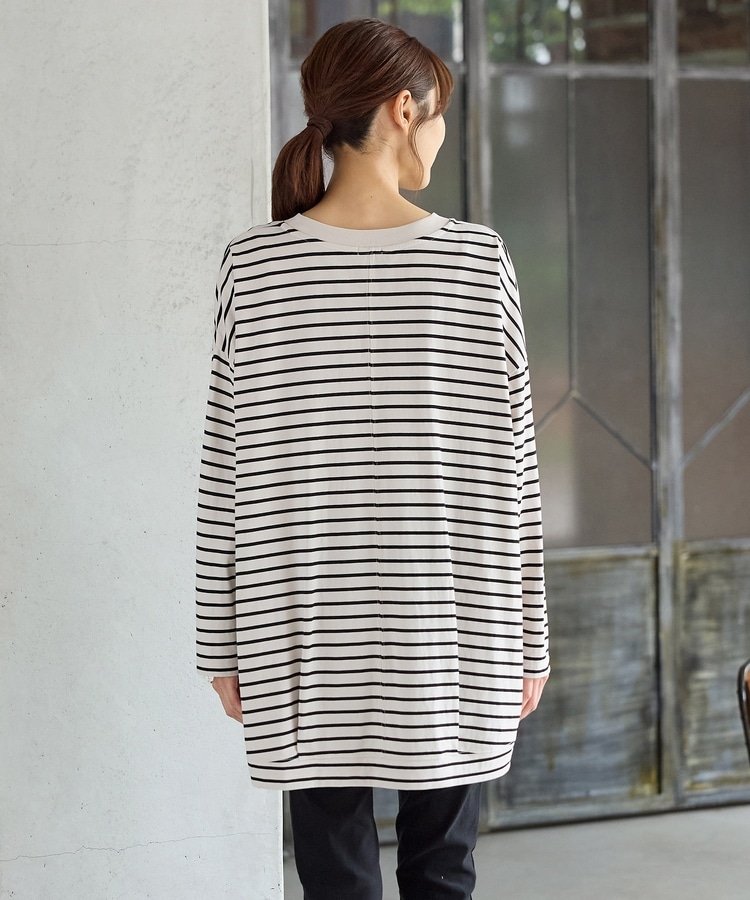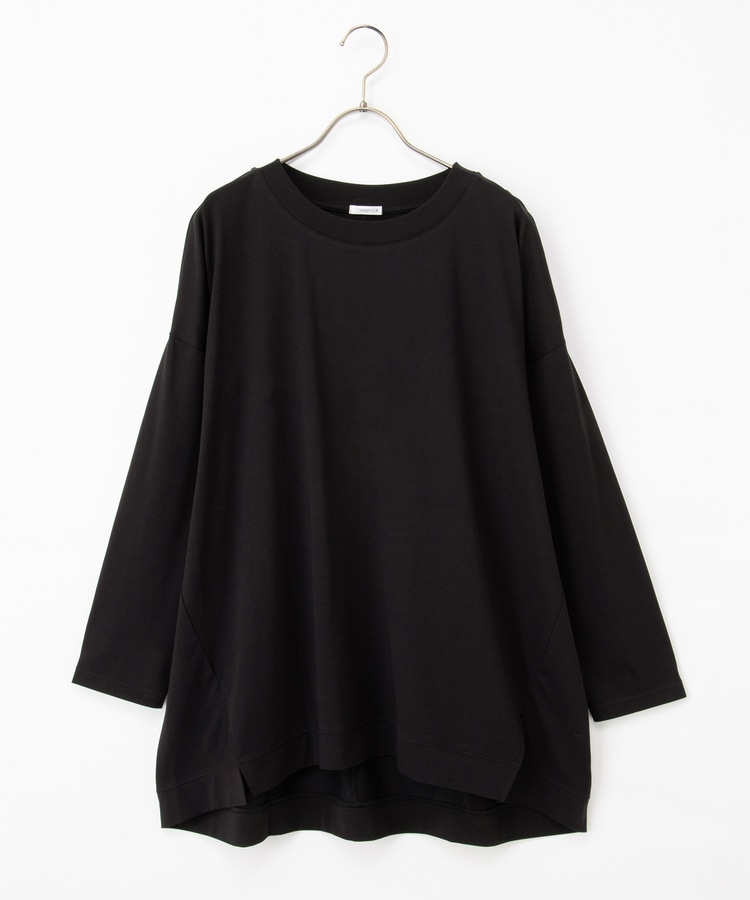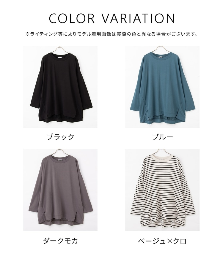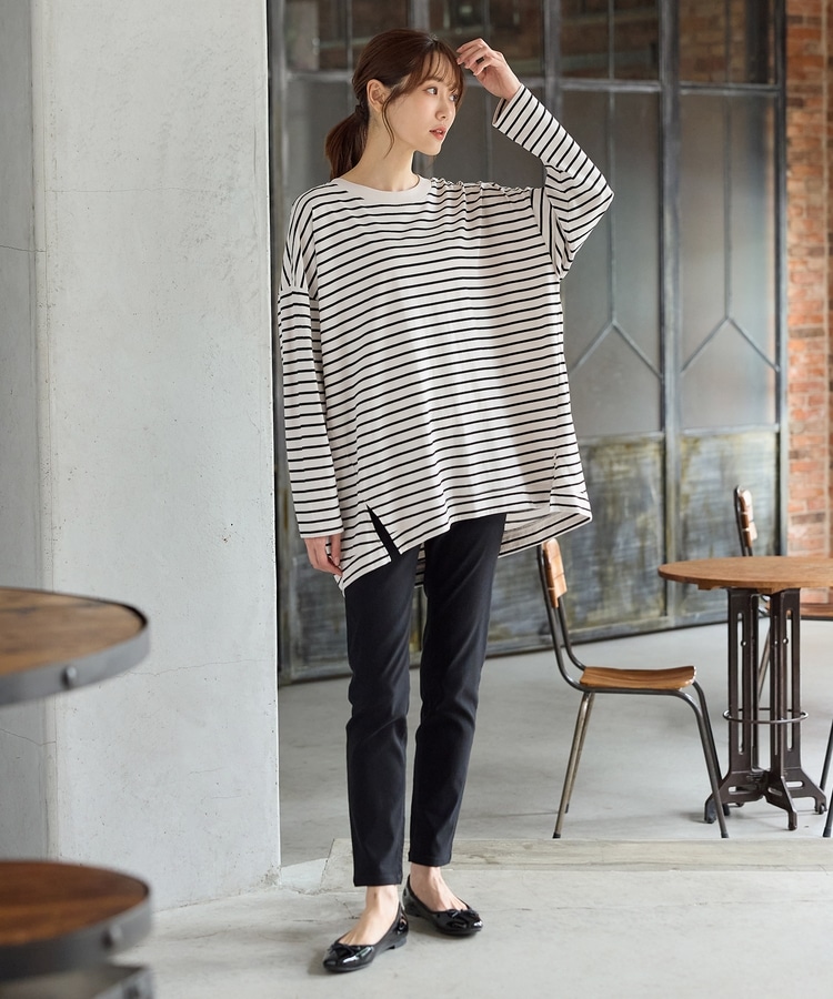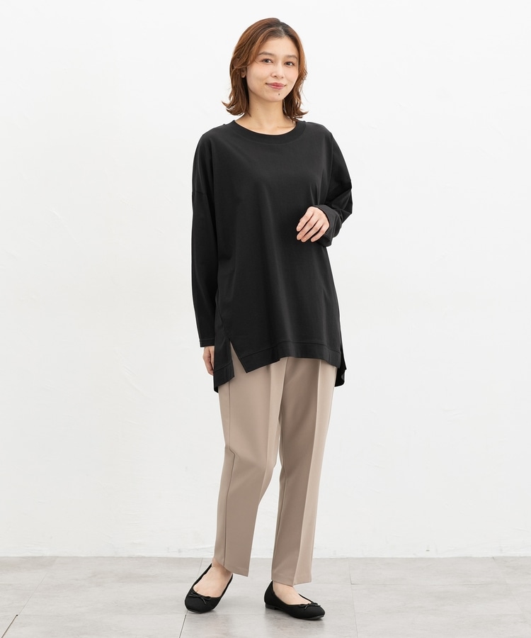 ゆったり幅とヒップがすっぽり隠れる丈感で体型もカバー。