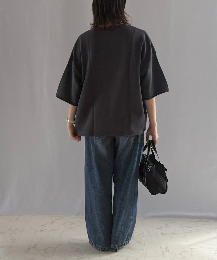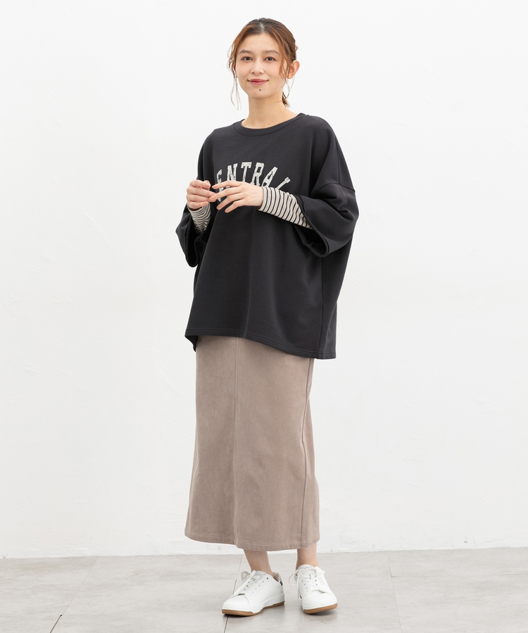ゆったり幅とヒップが隠れる丈感で体型もカバー。