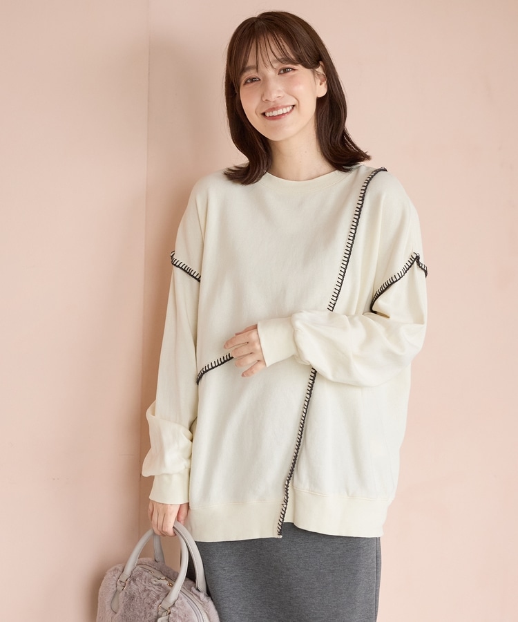 体型カバーも叶う、ゆったり幅とヒップまで隠れる丈感のビッグサイズで、大人のカジュアルさと可愛さを演出。