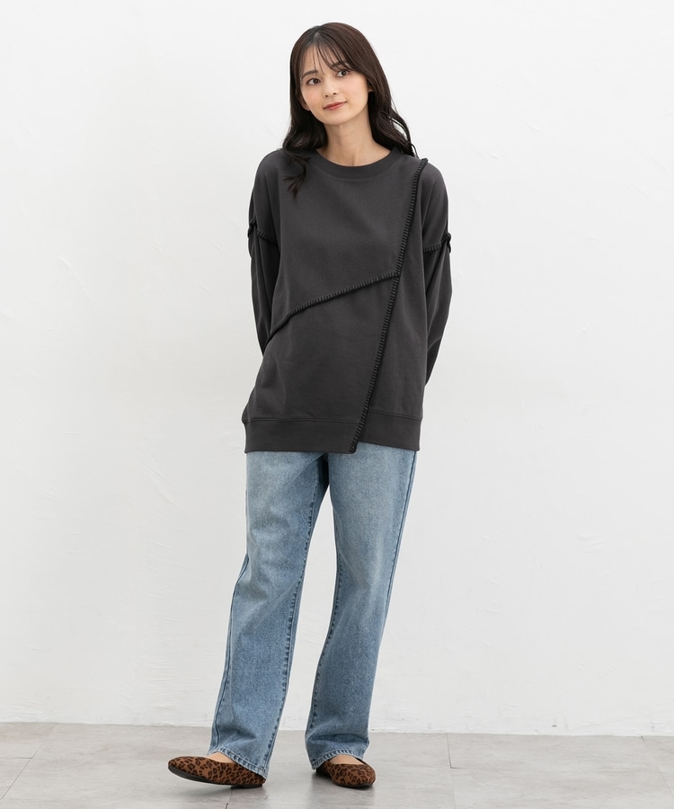 デニムワイドパンツを合わせたカジュアルスタイルや、ナロースカートやティアードスカートと合わせたフェミニンスタイルなど、幅広く活躍。
