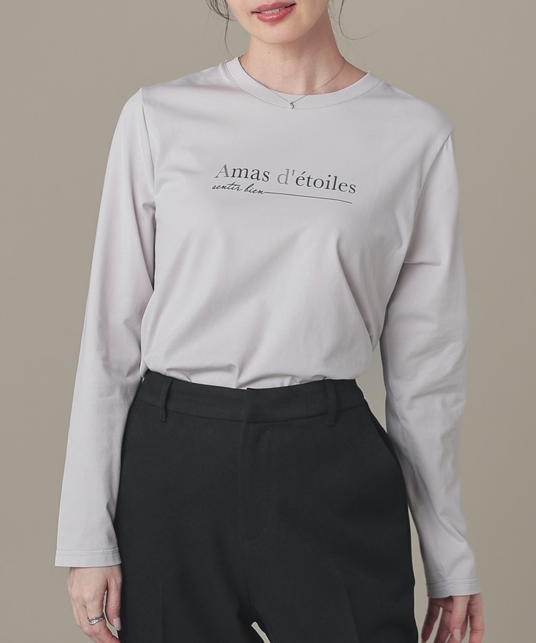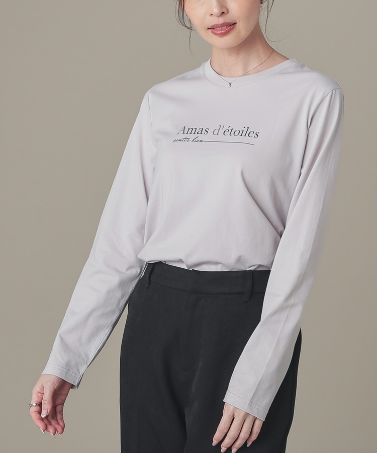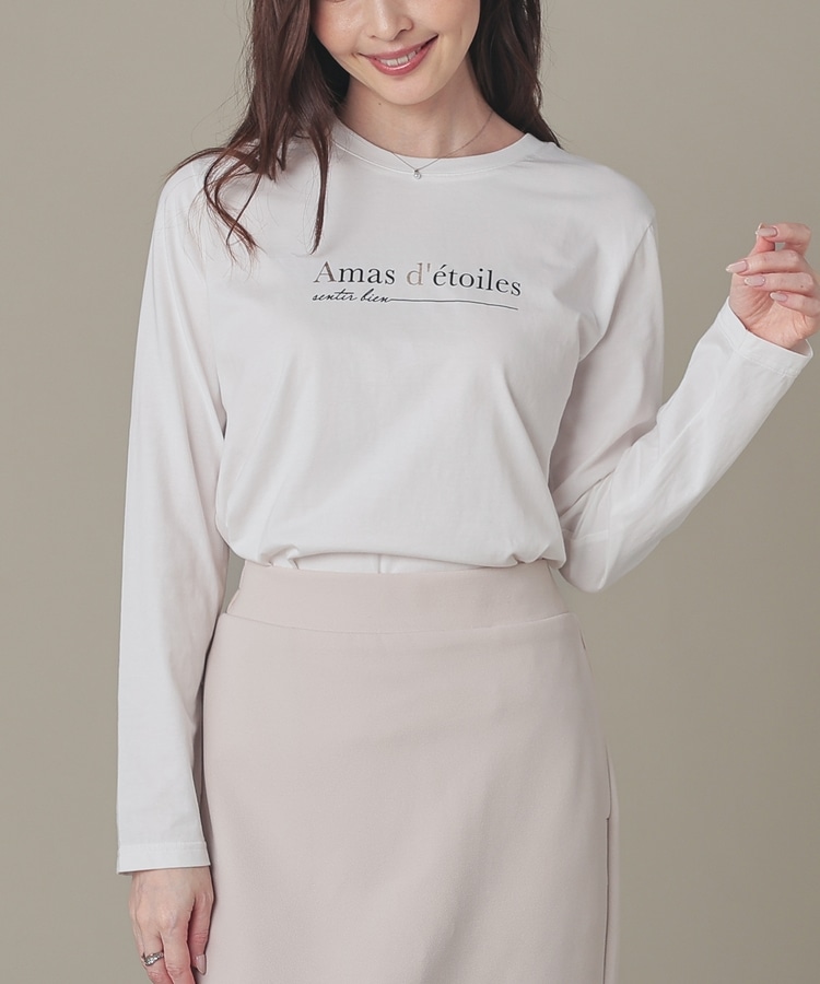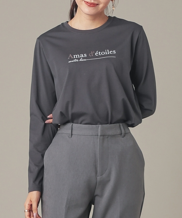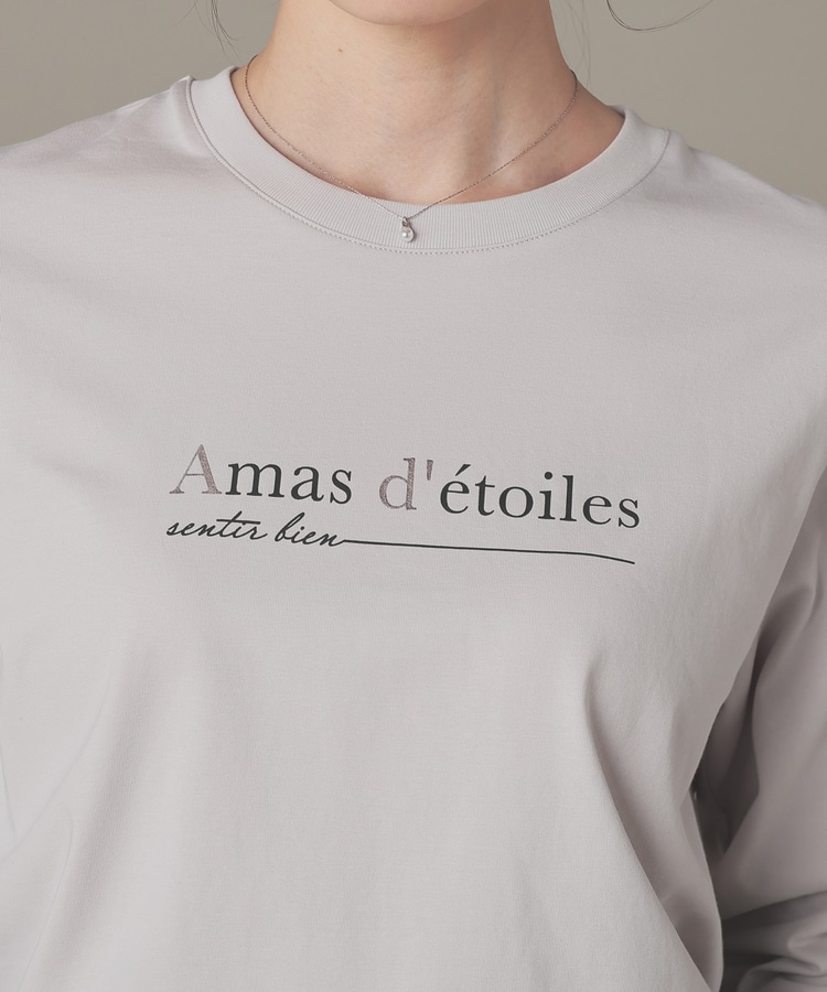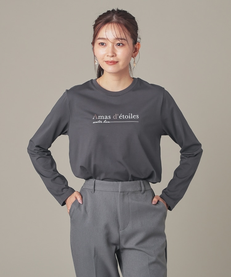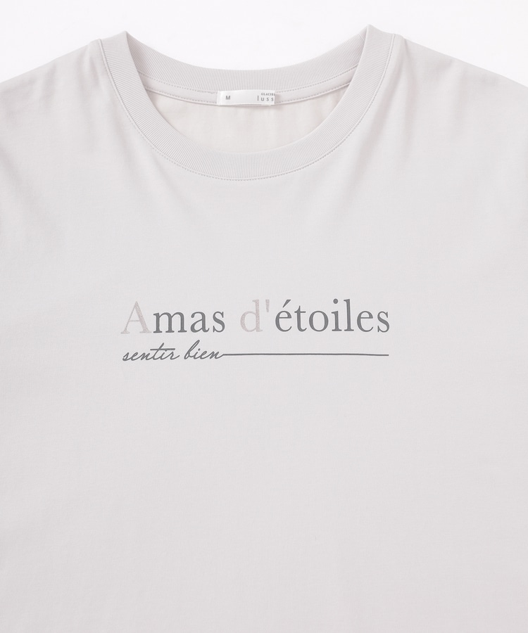 丸みのある、フェミニンなネックラインのシンプルデザインに、箔プリントで華やかさをプラス。