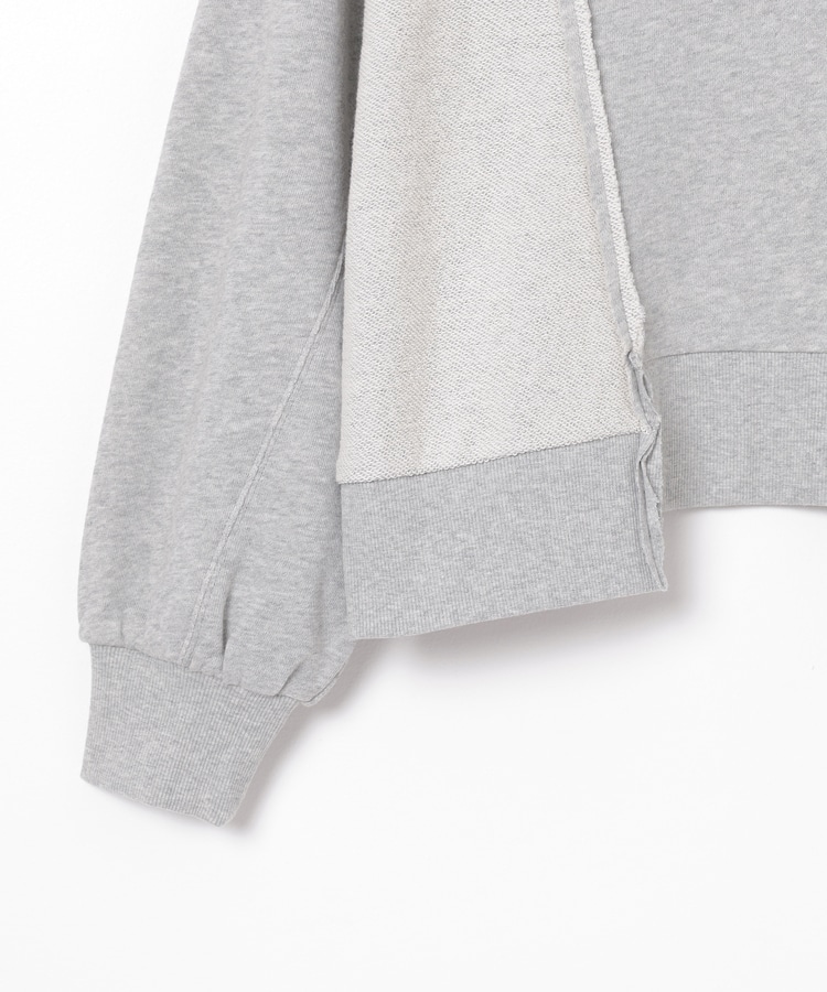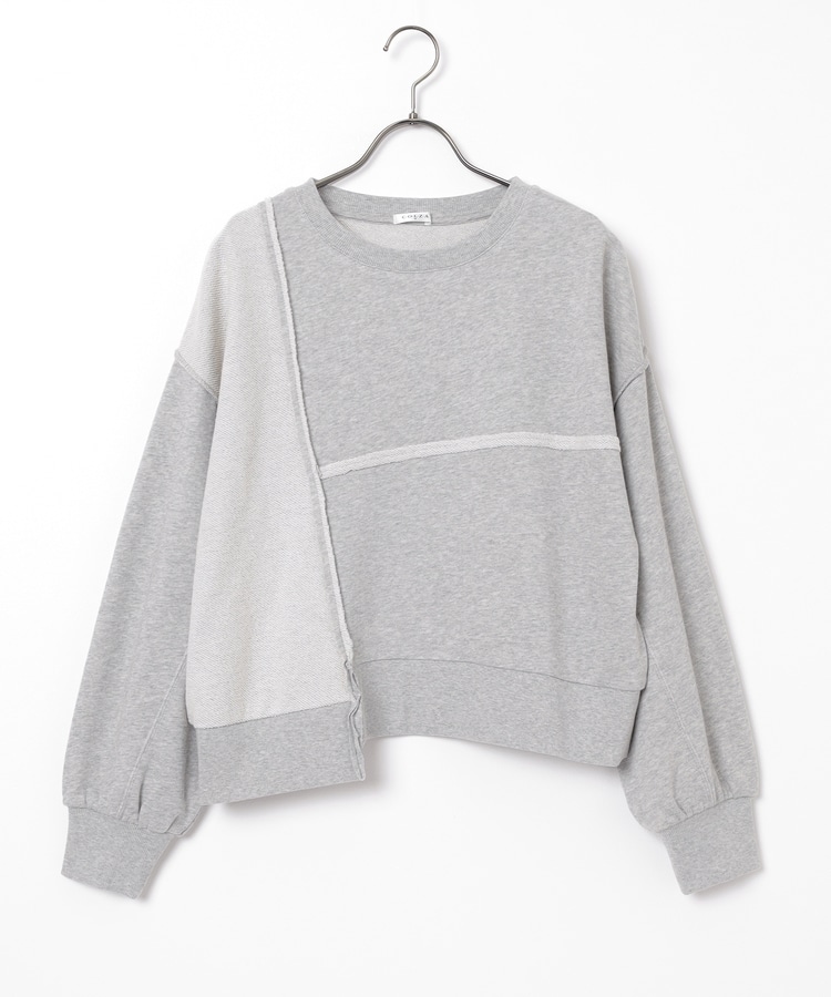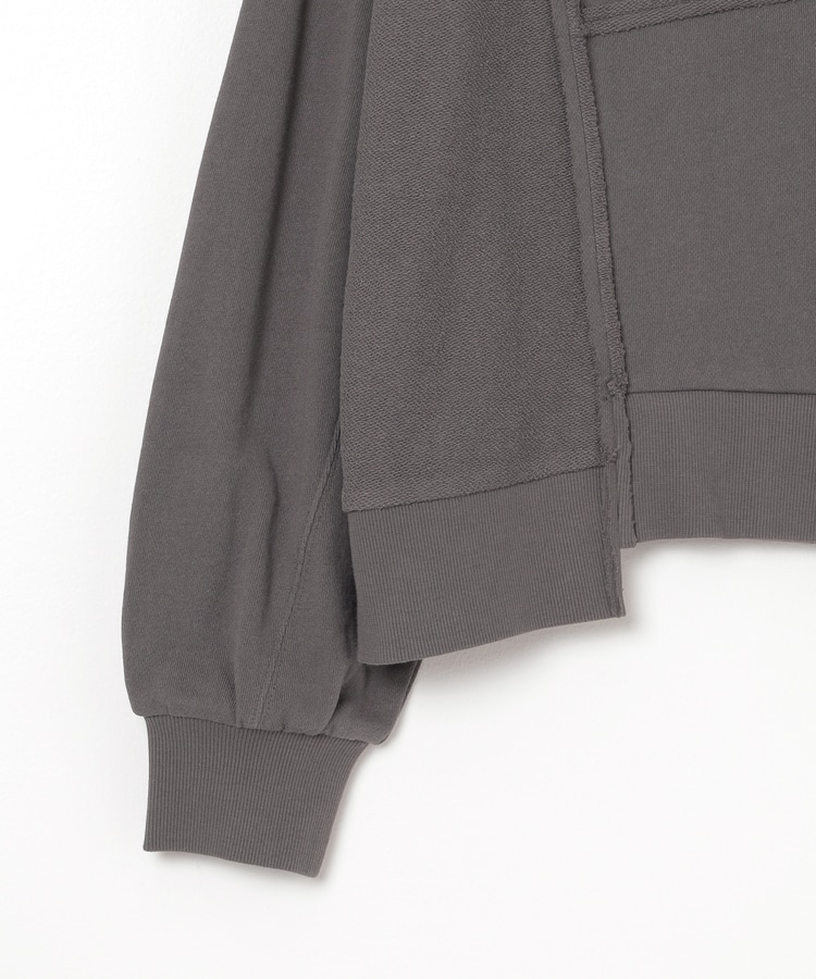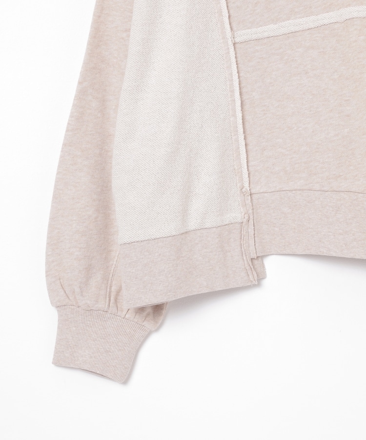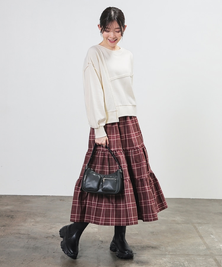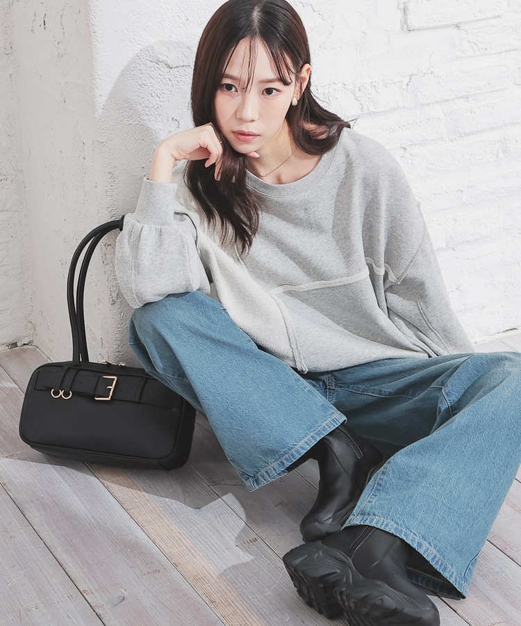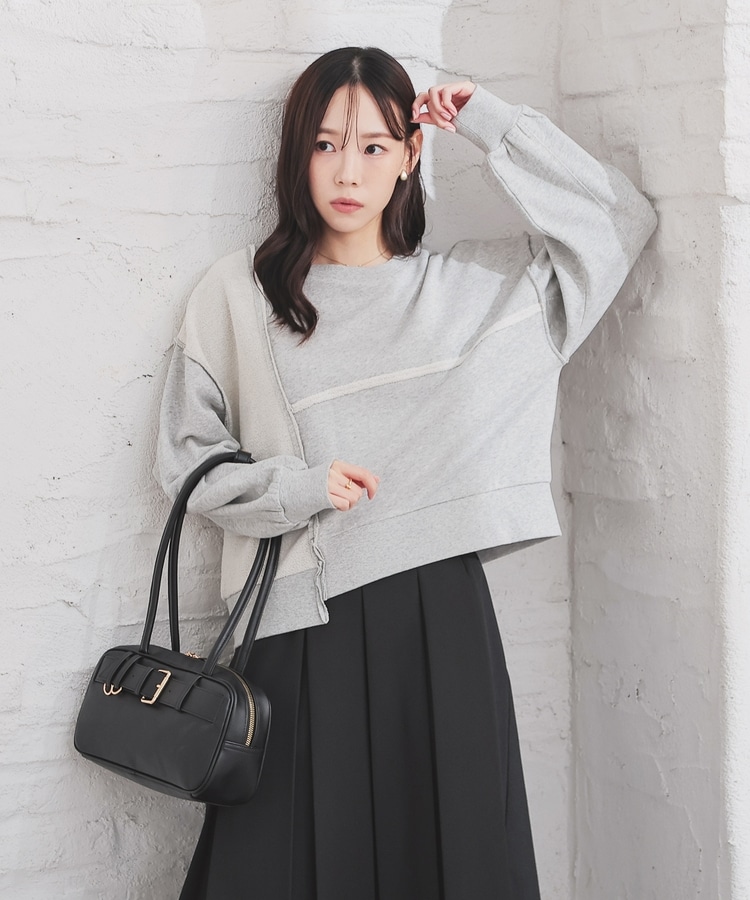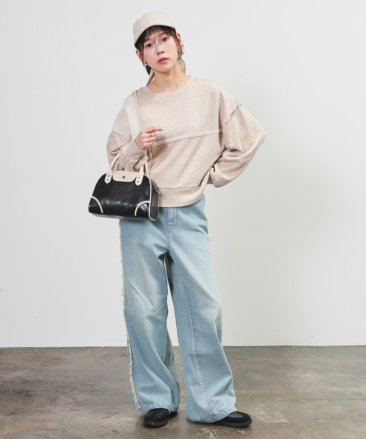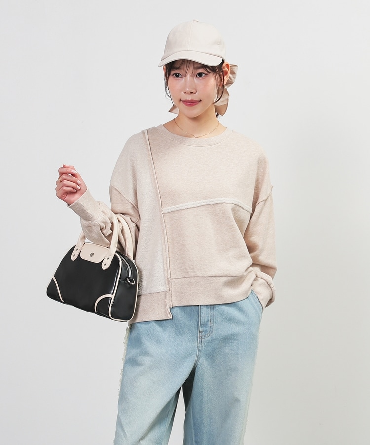 部分的に生地の裏側や縫い目を表側にして、リメイク風に仕上げた、こなれ感のあるデザイン。