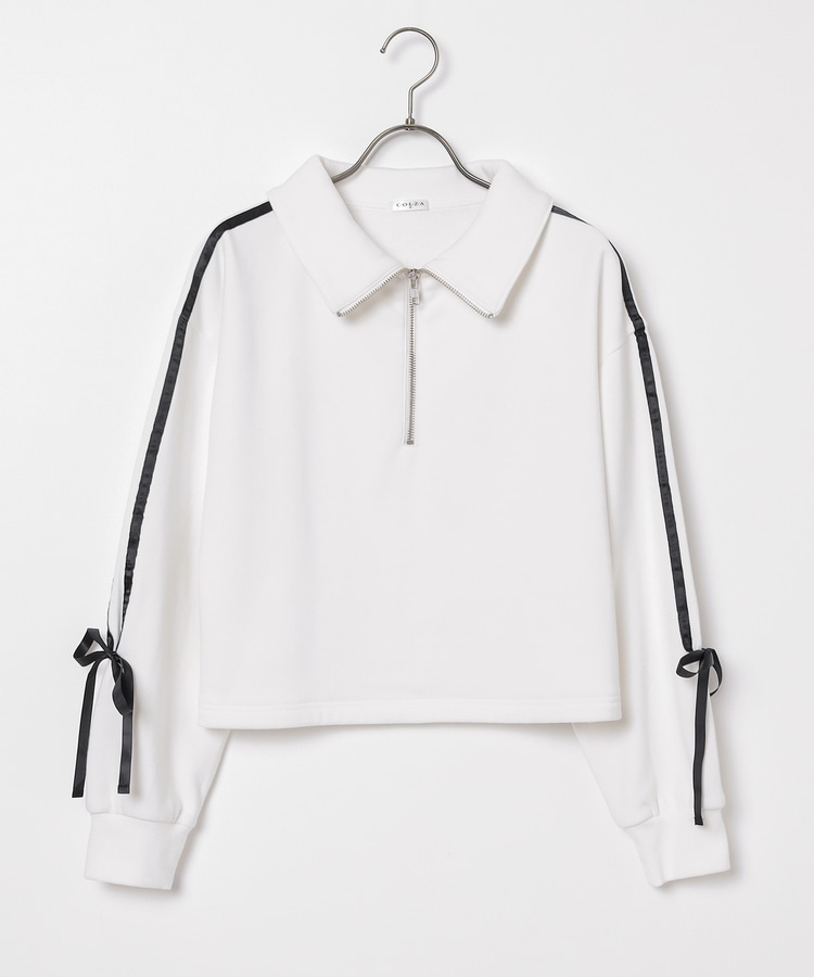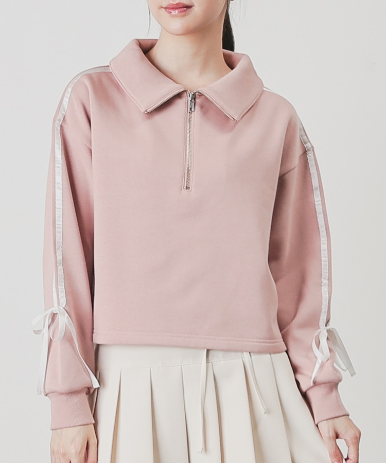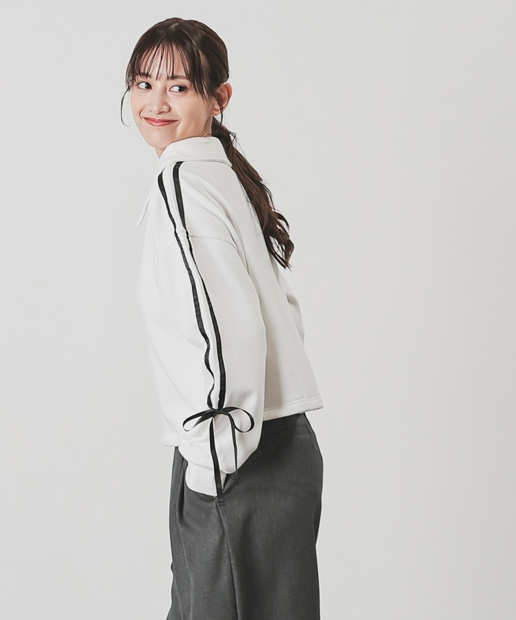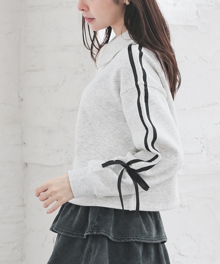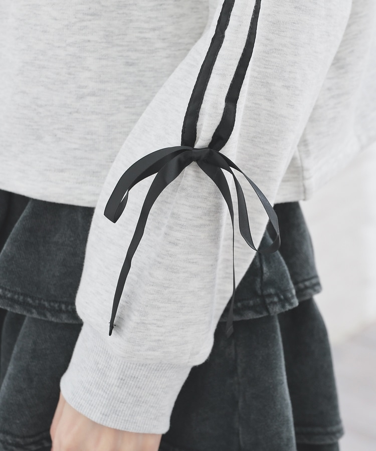 袖のラインがアクセントになるスポーティーなデザインにリボンで可愛さをプラス。