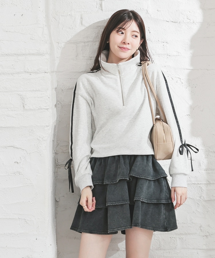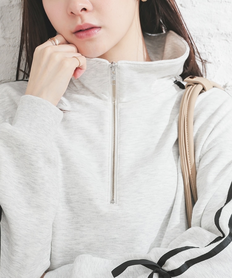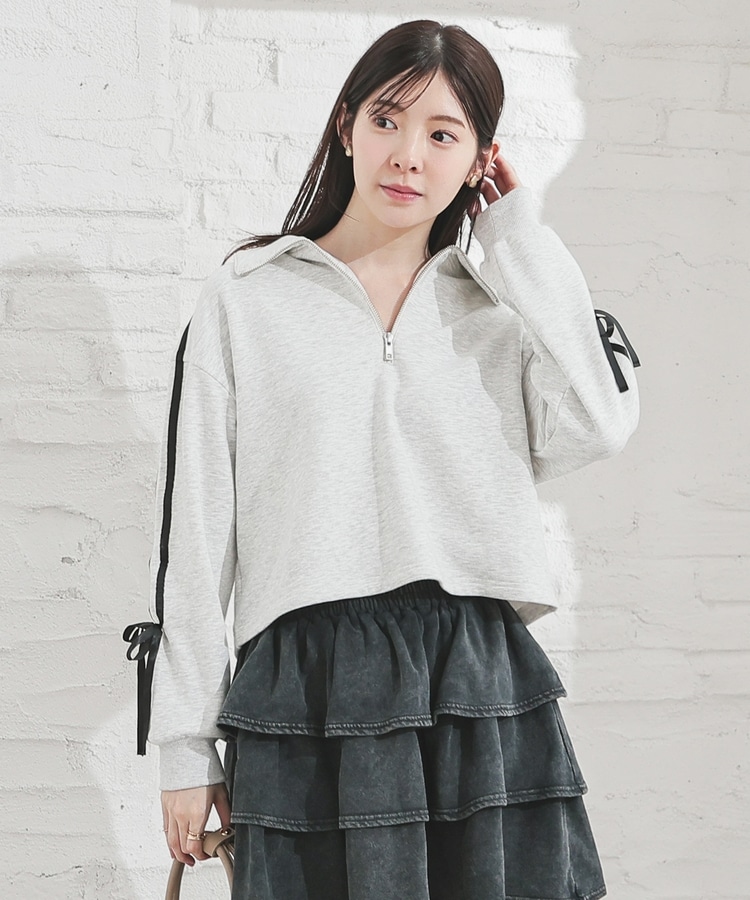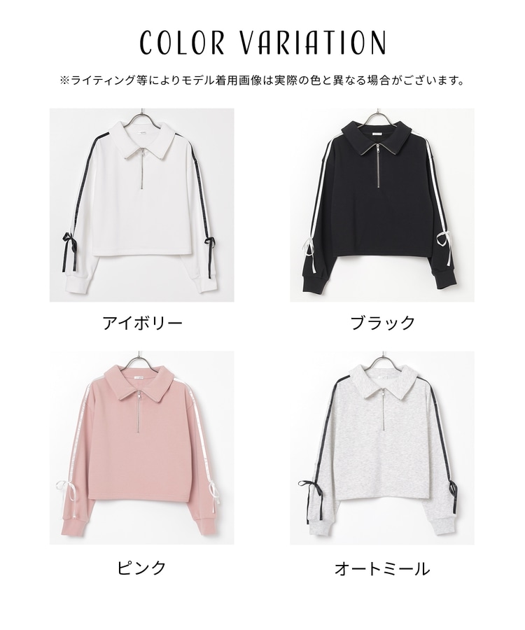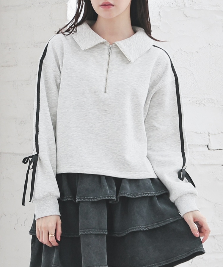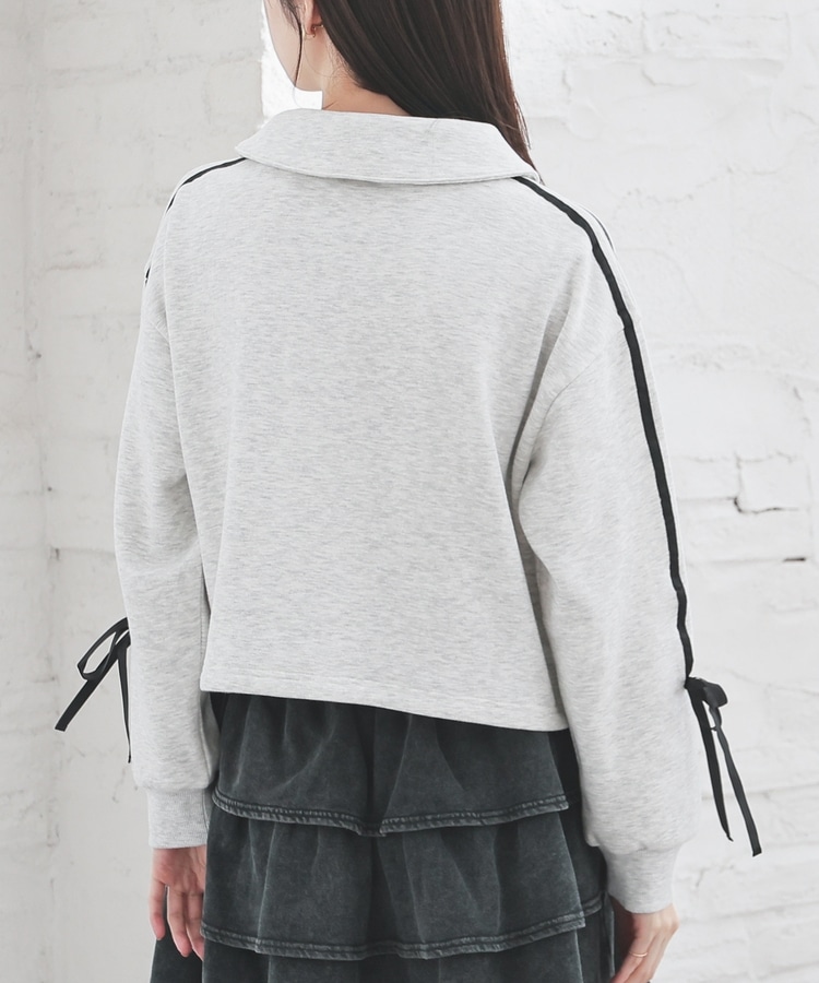 袖のラインがアクセントになるスポーティーなデザインにリボンで可愛さをプラス。