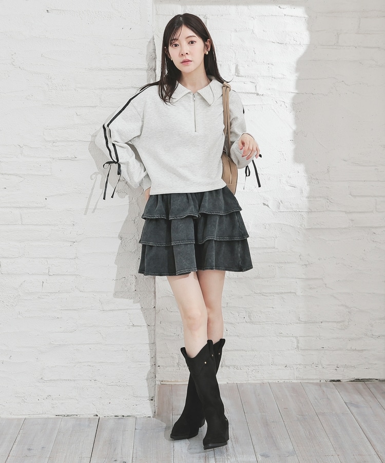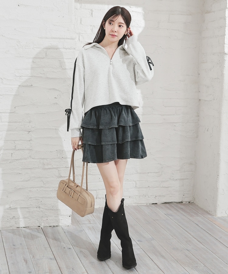 デニムストレートパンツやミニフレアスカートなど、ボリュームのあるボトムスを合わせると好バラン。
