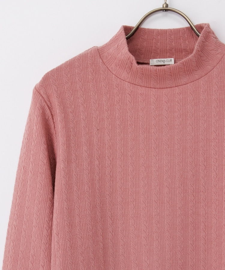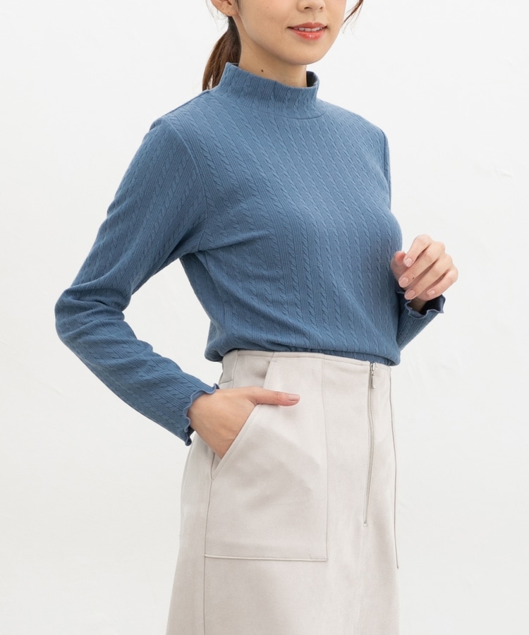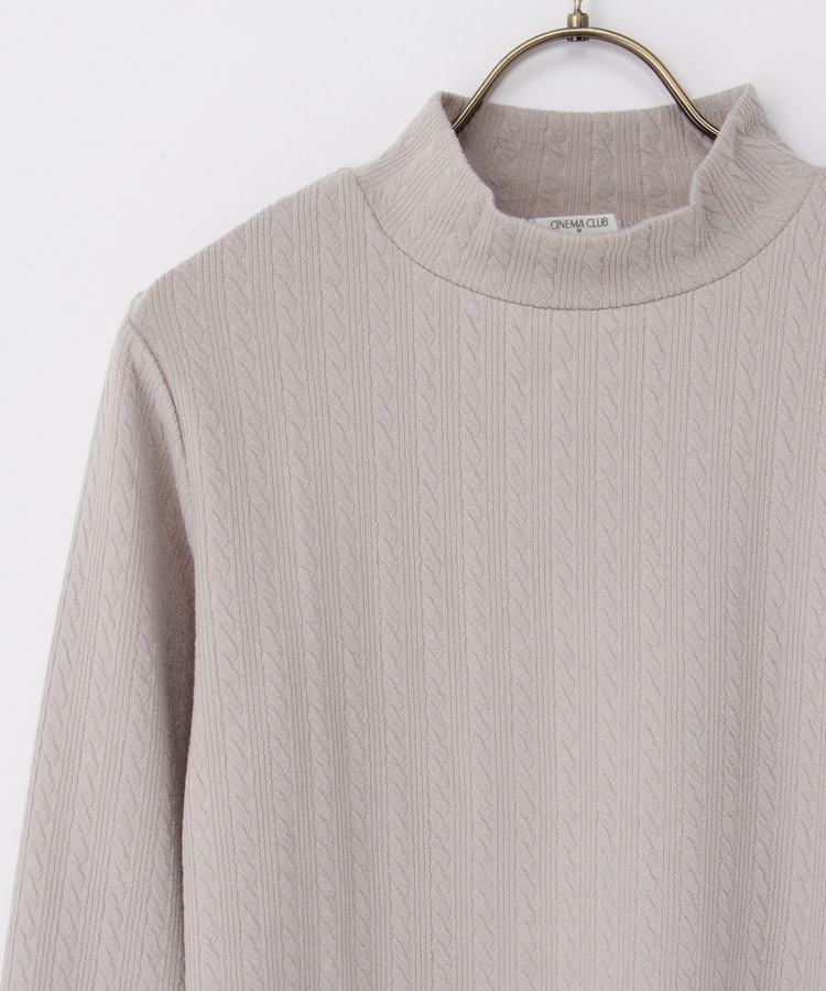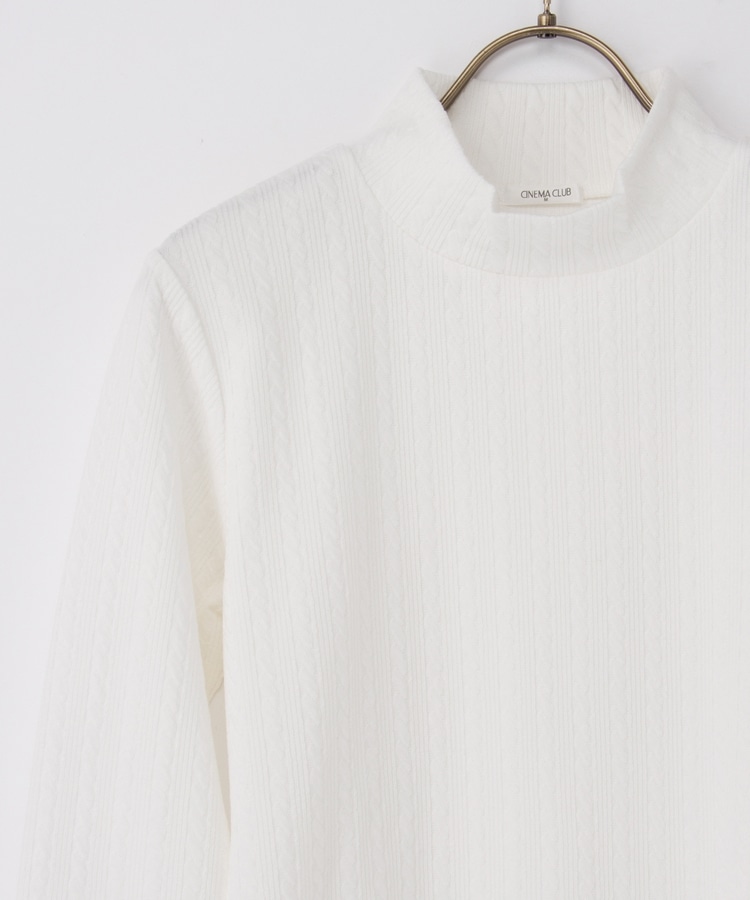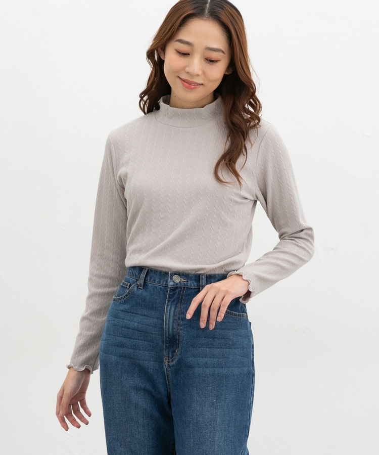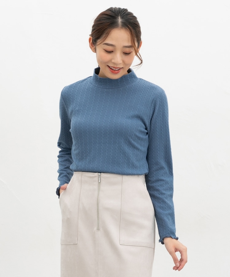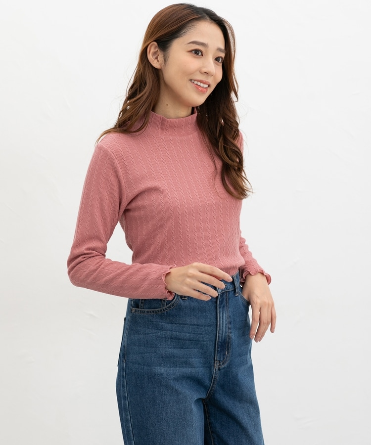 凹凸感のある上品なケーブル柄の、首元まであったかなハイネックデザイン。