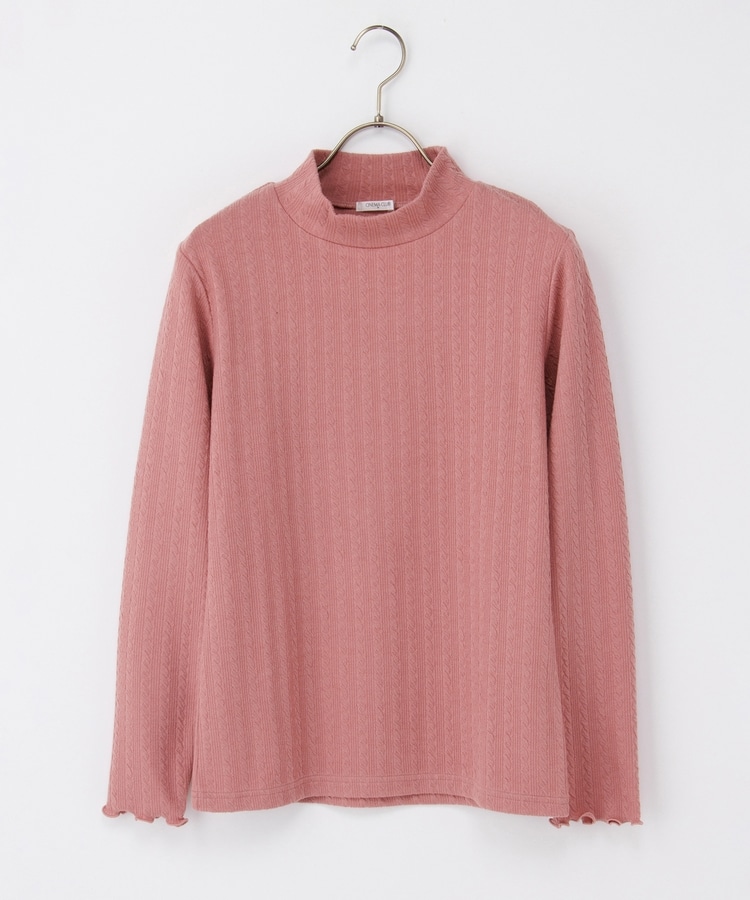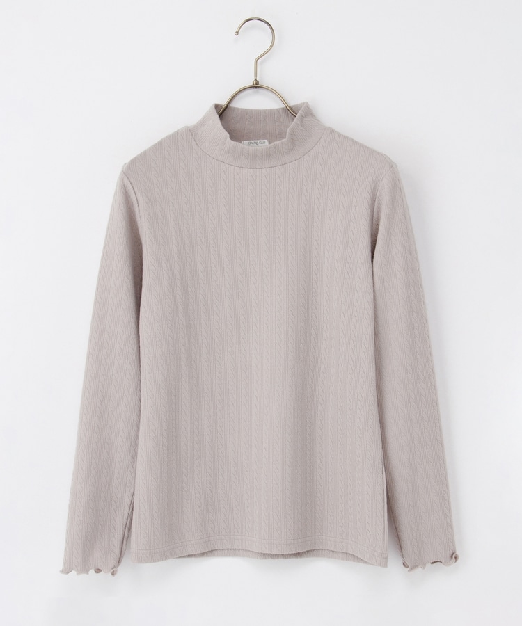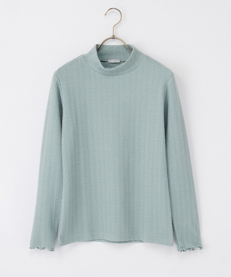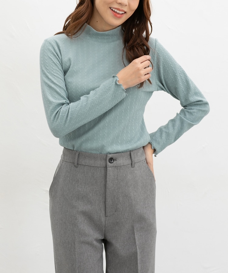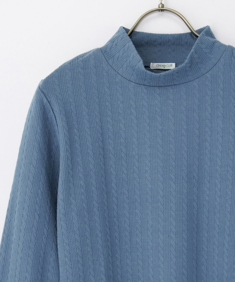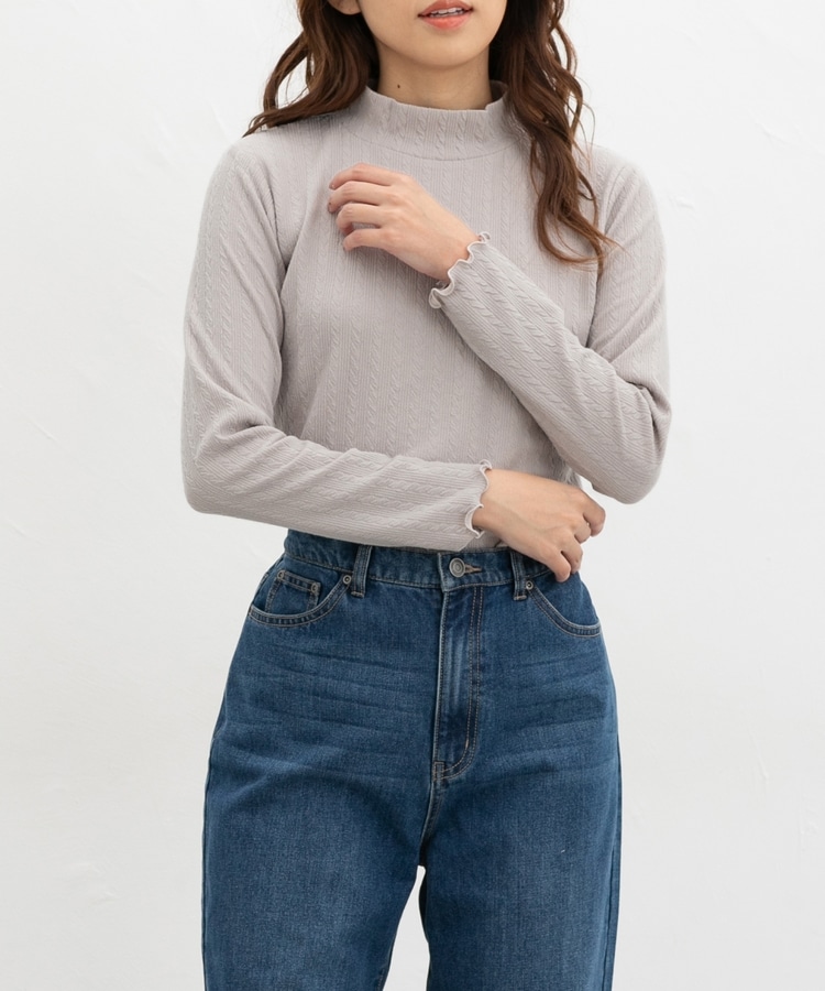 凹凸感のある上品なケーブル柄の、首元まであったかなハイネックデザイン。