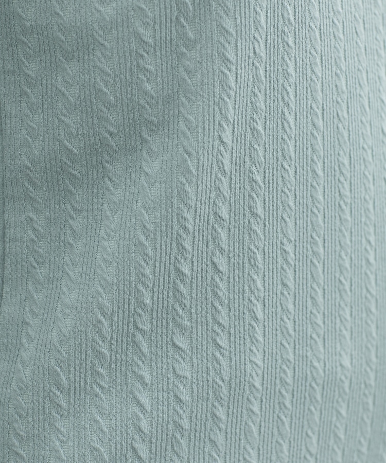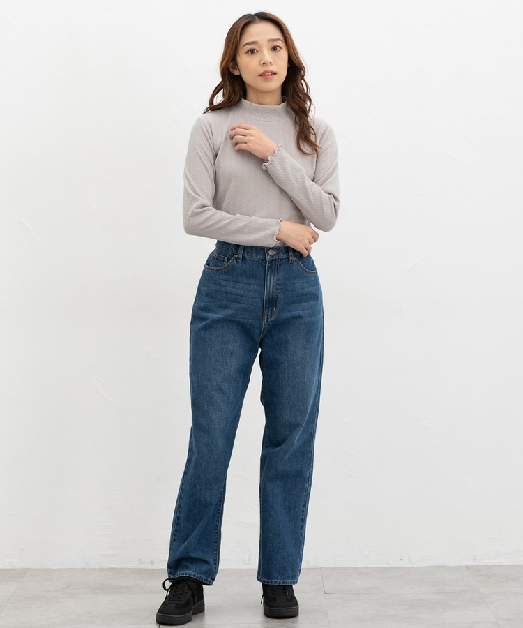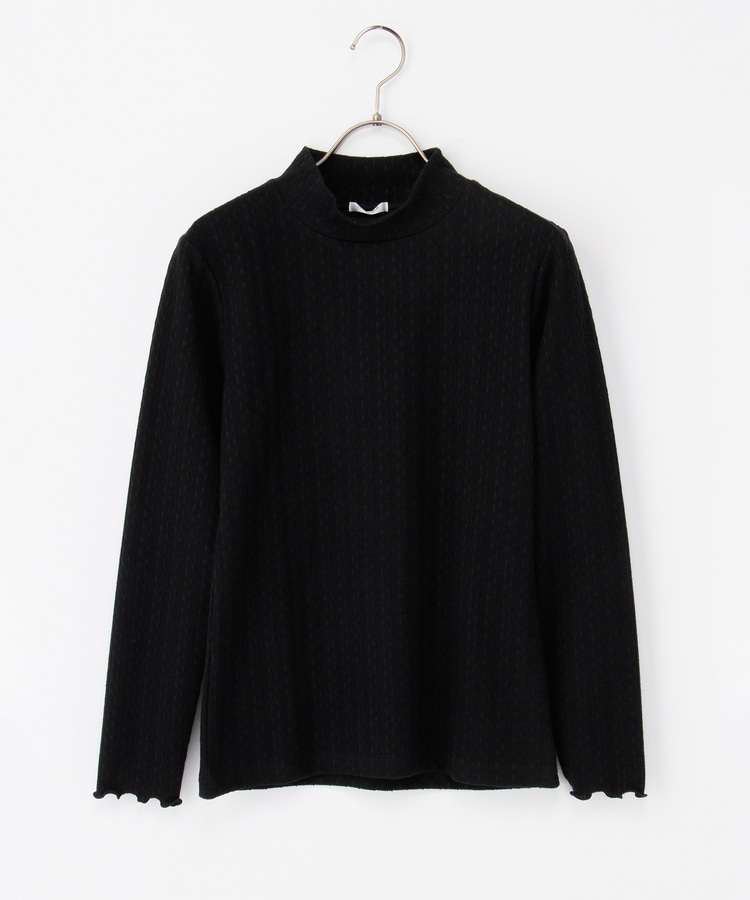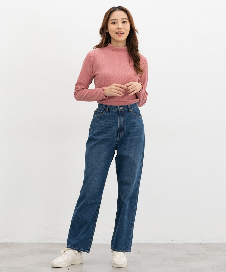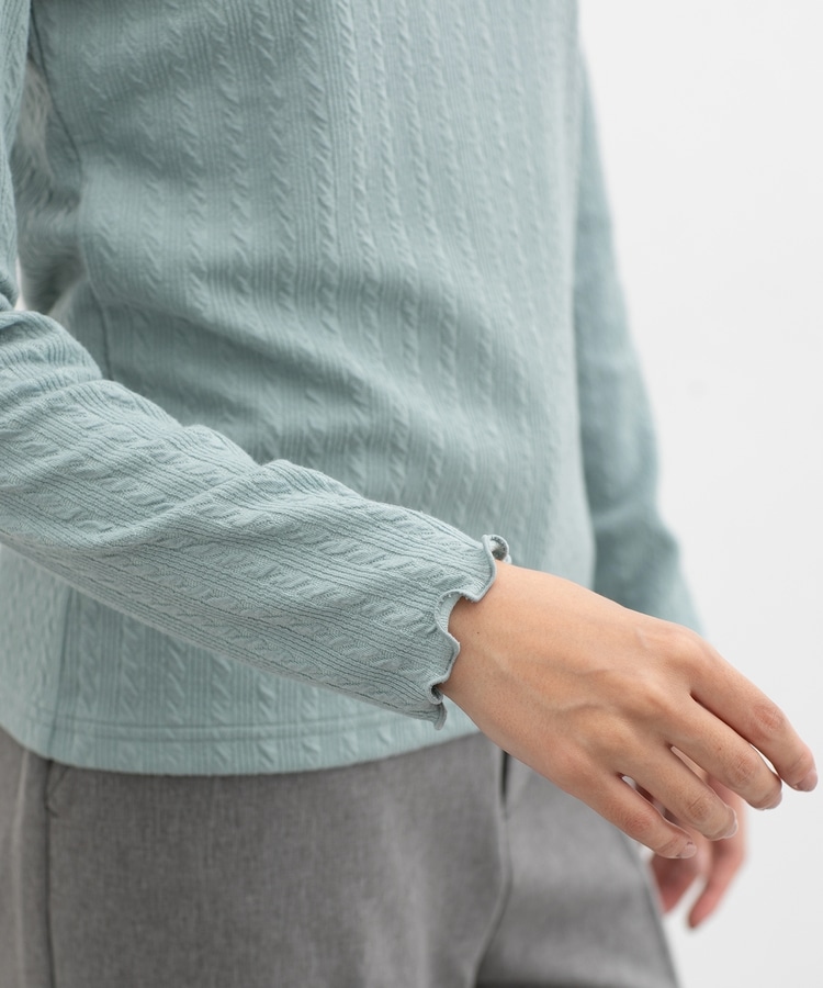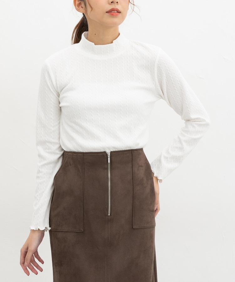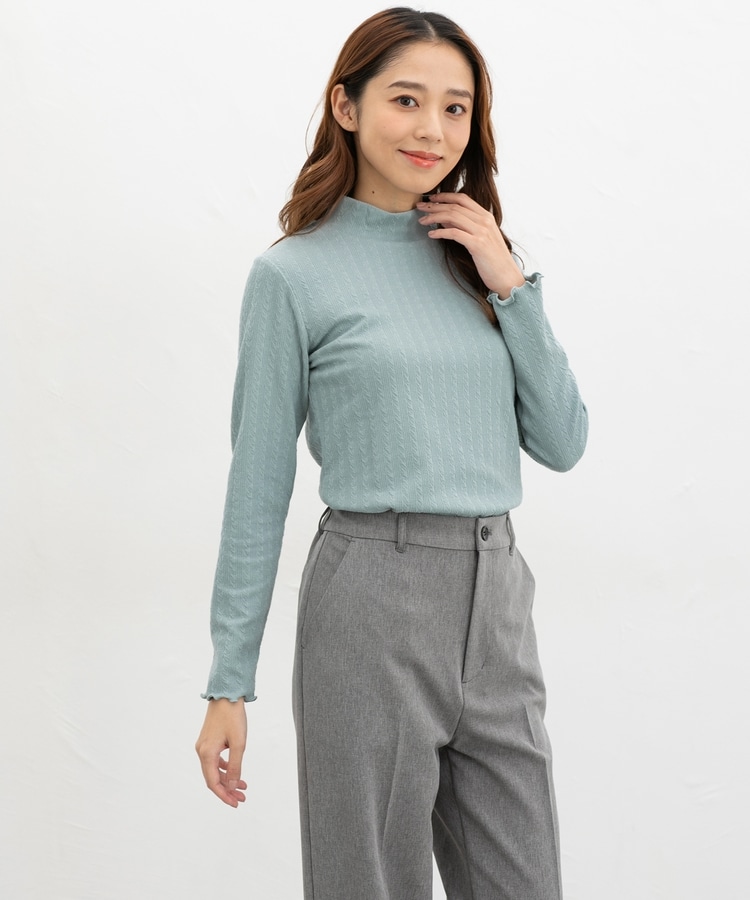 凹凸感のある上品なケーブル柄の、首元まであったかなハイネックデザイン。