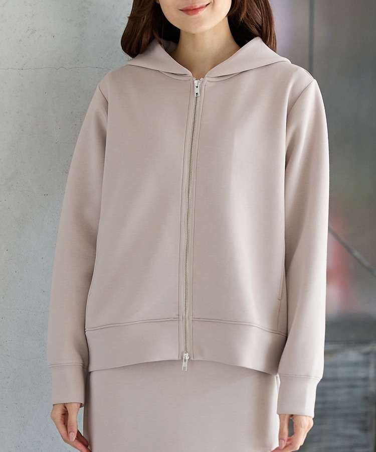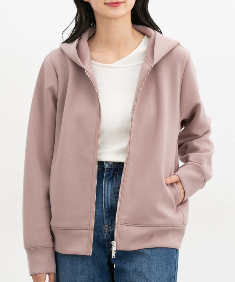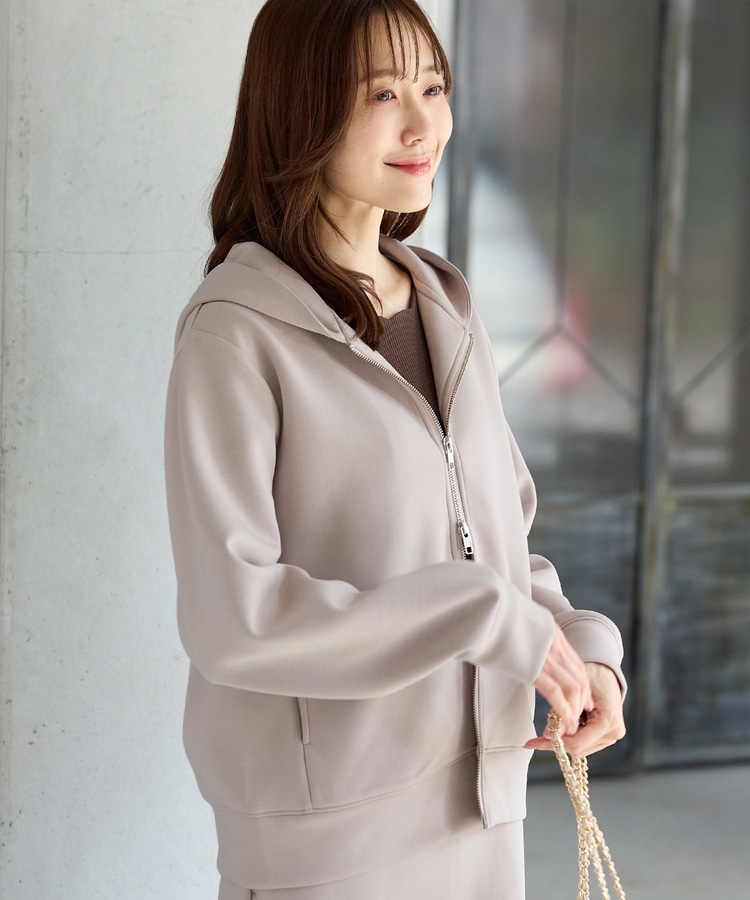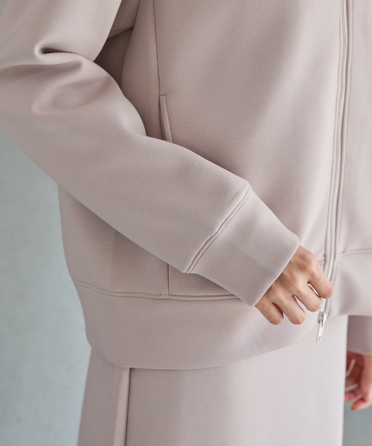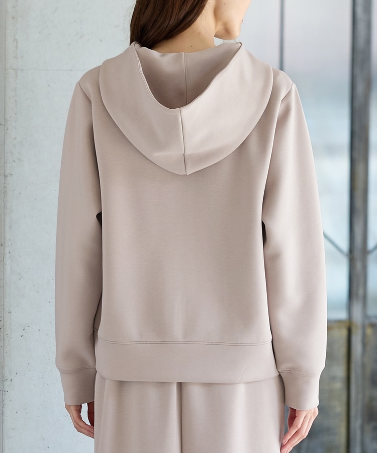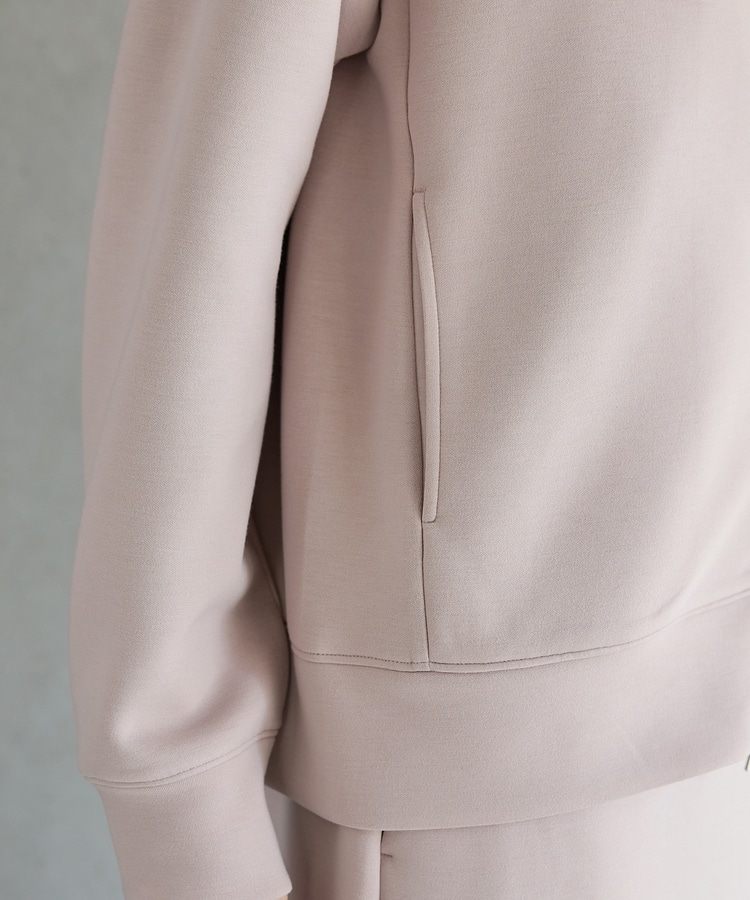 ストレッチの利いた、両面が滑らかなレーヨン混のきれいめスウェット素材。