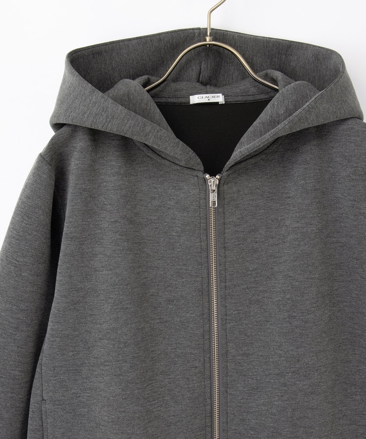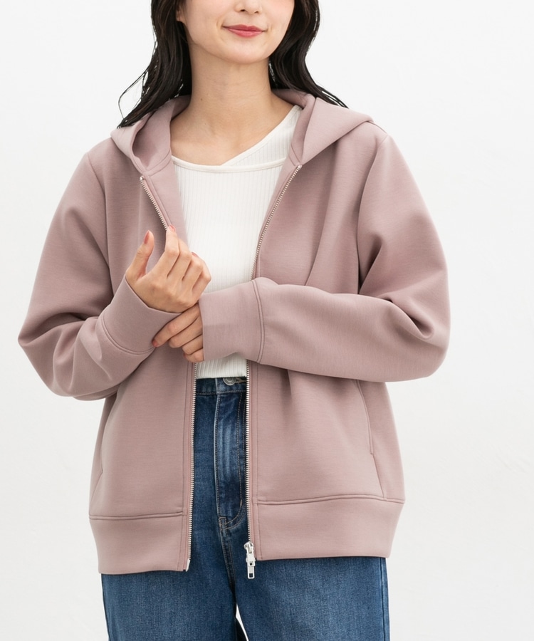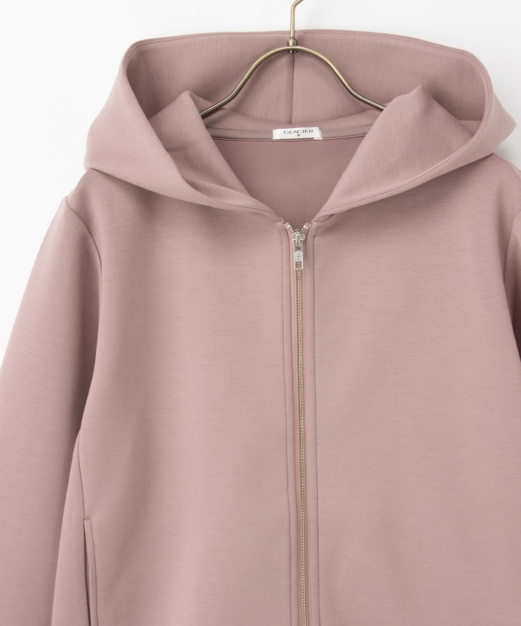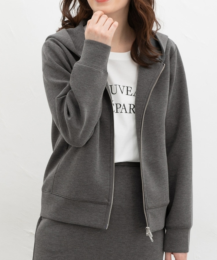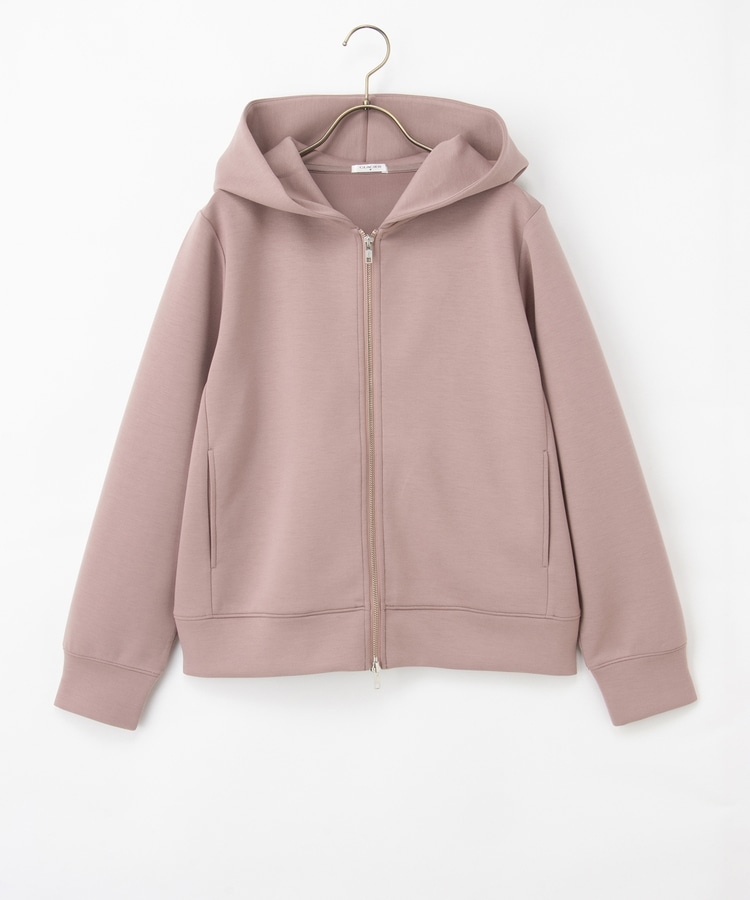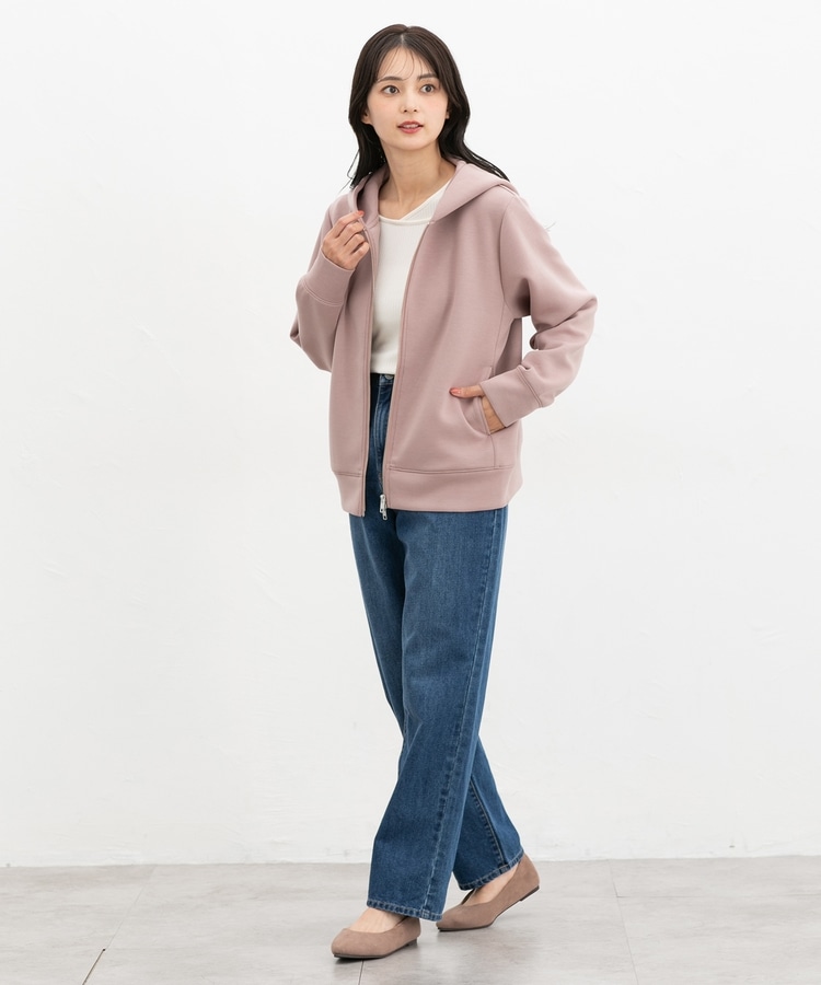 ストレッチの利いた、両面が滑らかなレーヨン混のきれいめスウェット素材。