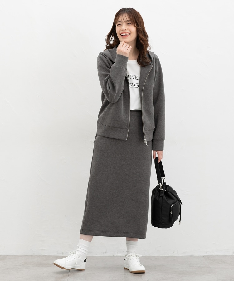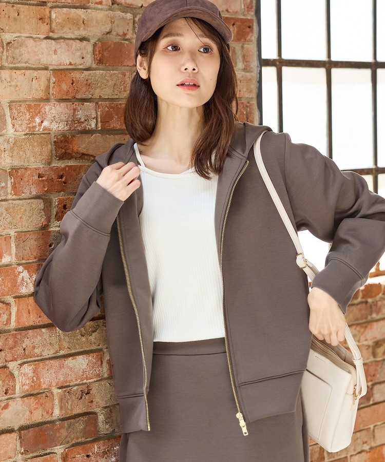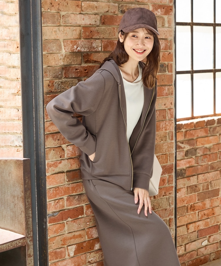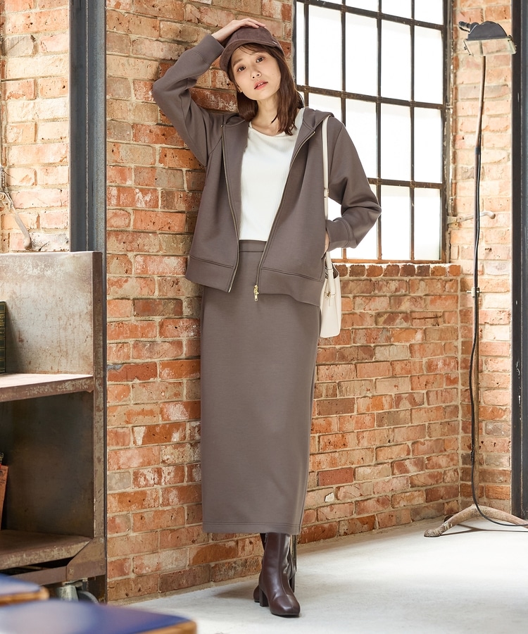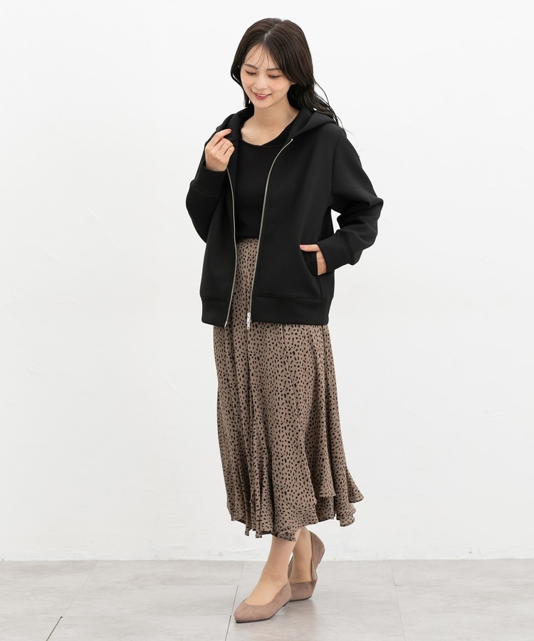ファスナーの開閉でシルエットアレンジが楽しめ、大人な抜け感スタイルに。