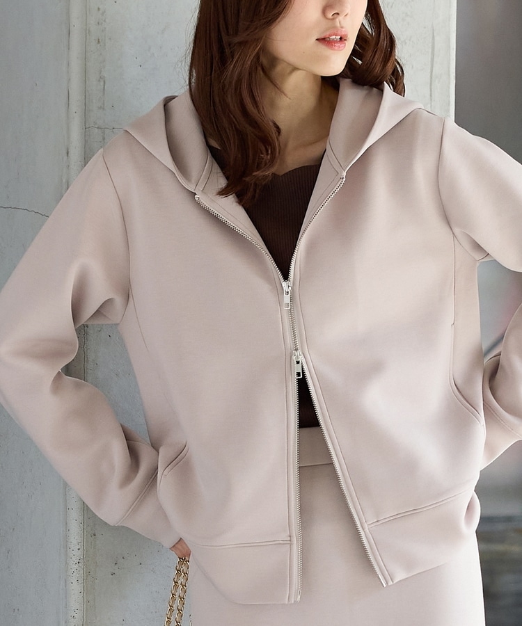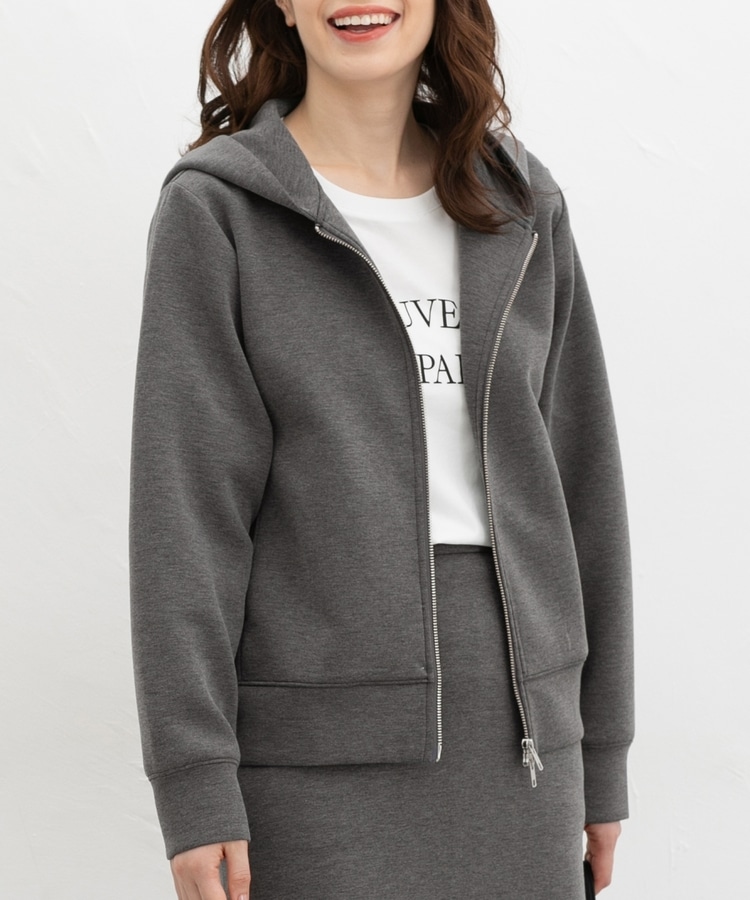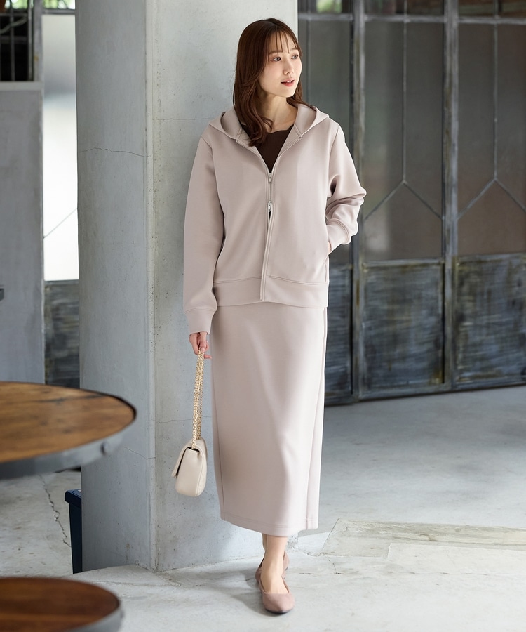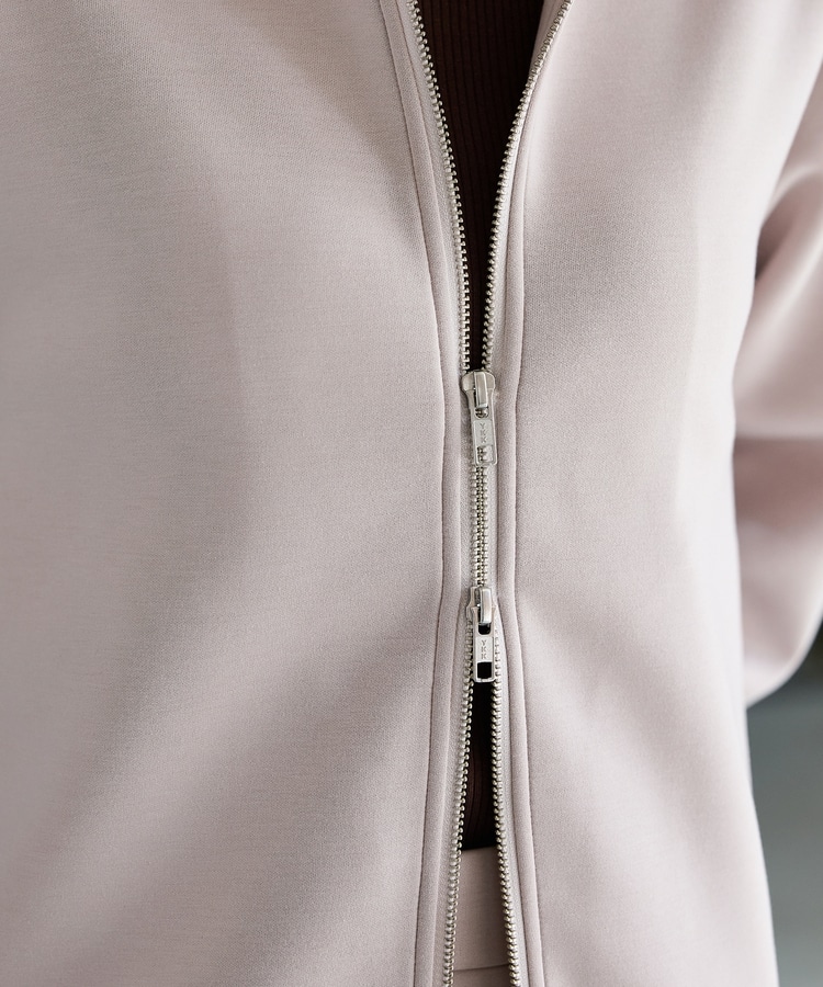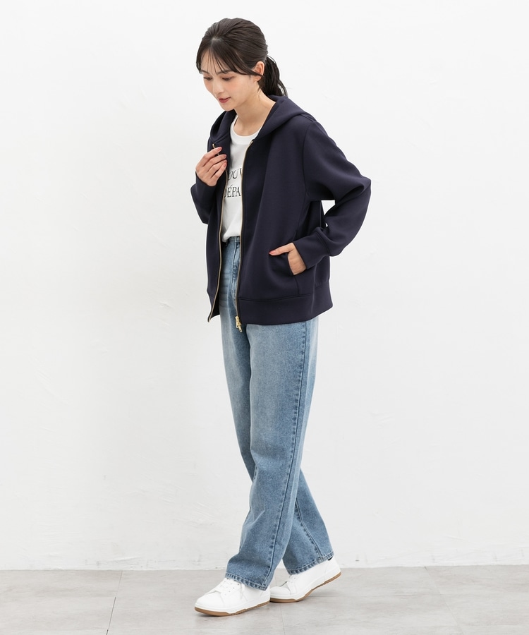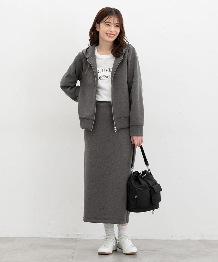 ファスナーの開閉でシルエットアレンジが楽しめ、大人な抜け感スタイルに。
