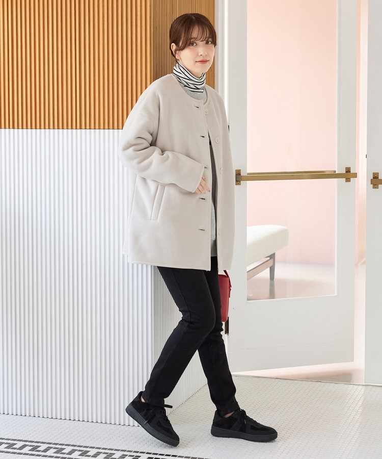 インナーをハイネックやパーカーにしたり、マフラーを巻いたりと、衿元のおしゃれを楽しむのも◎