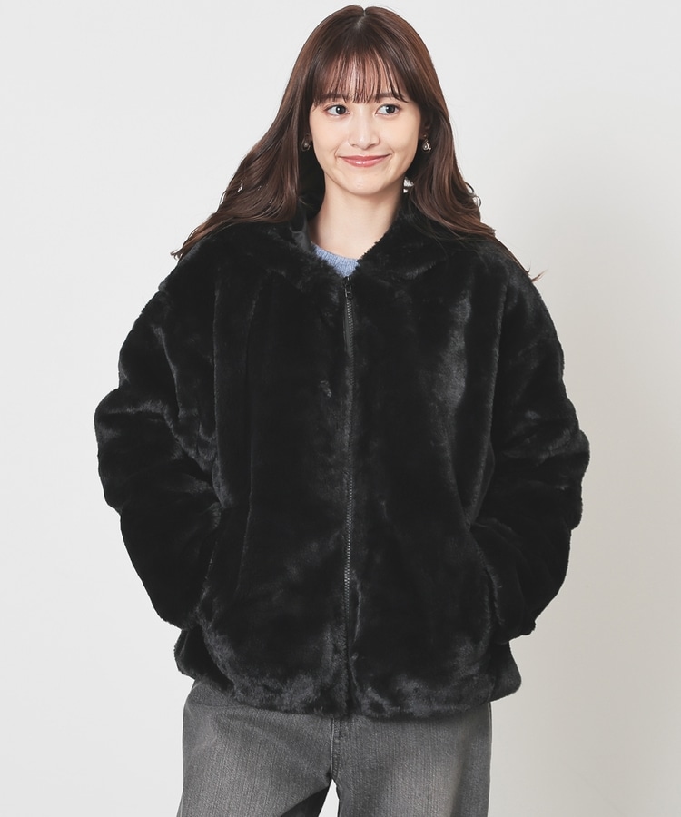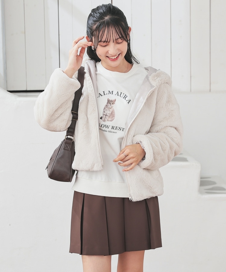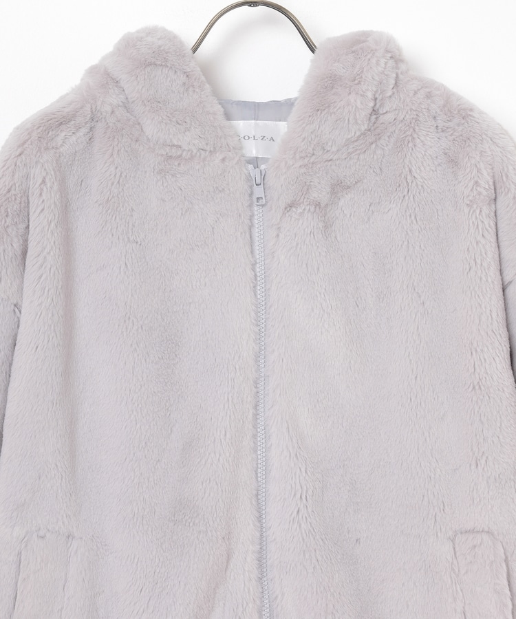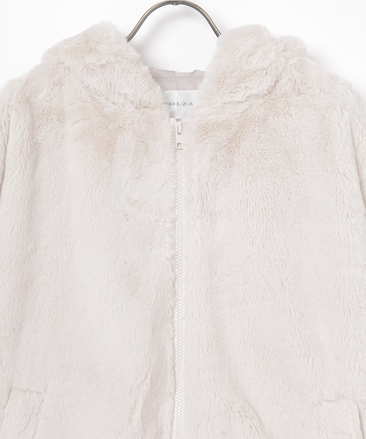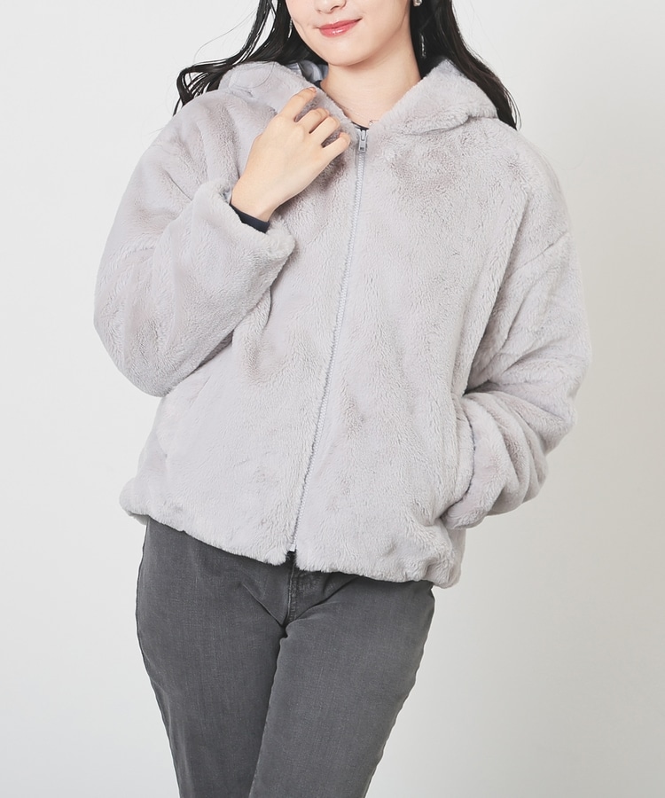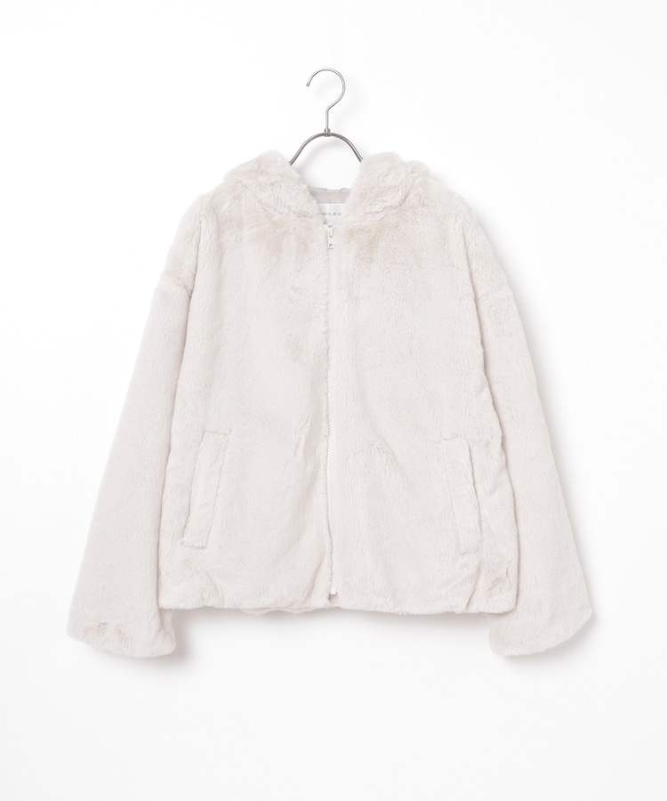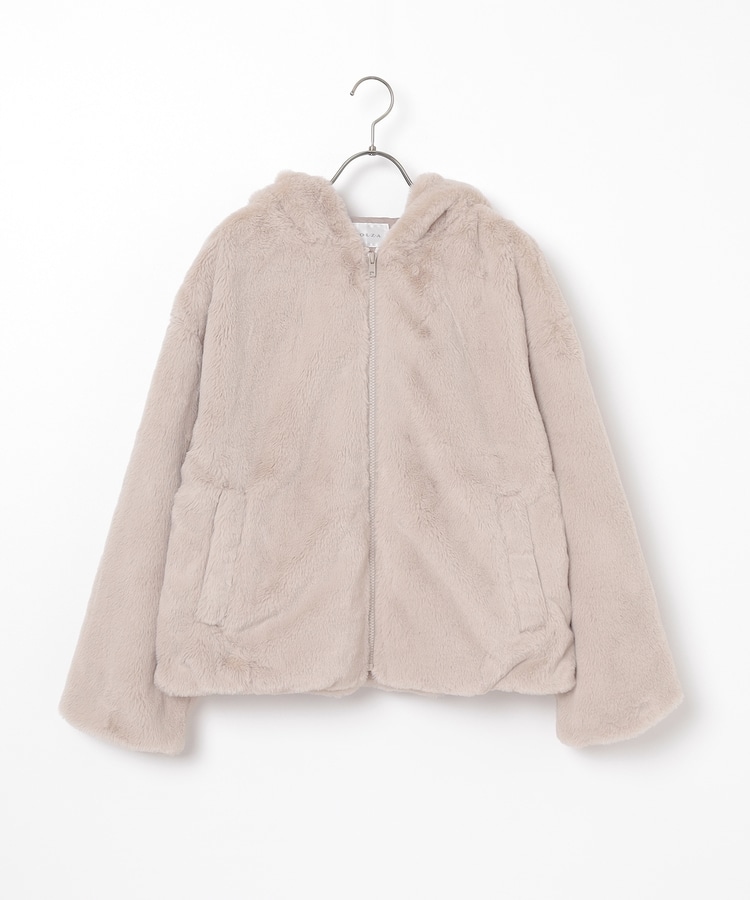 シーズンムードたっぷりなふわもこの、小顔効果も期待できるフード付きデザイン。