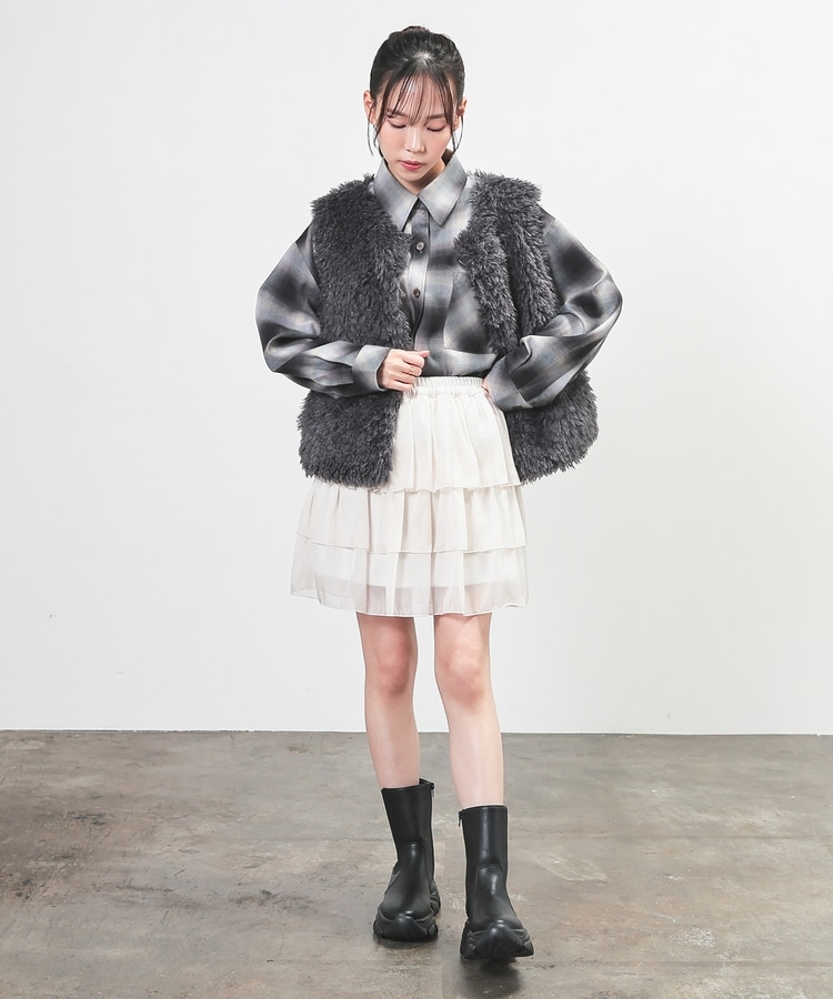スカートにもパンツにも合い、ボリュームのあるボトムスとも好相性。