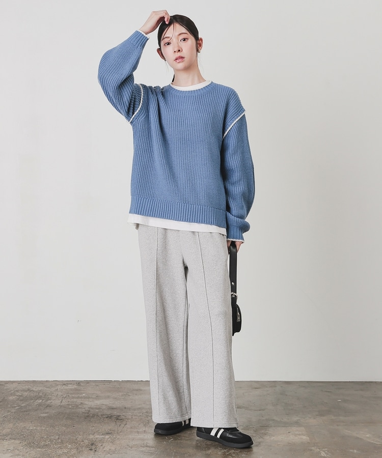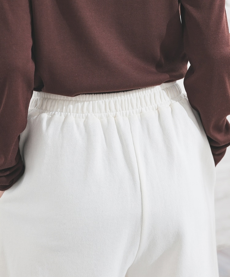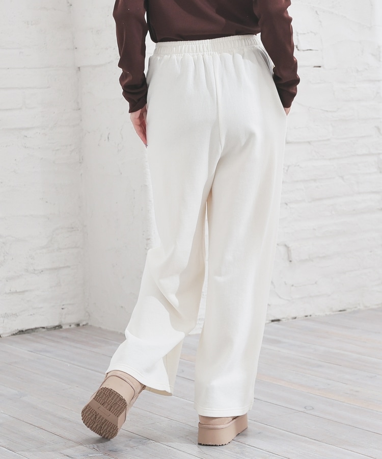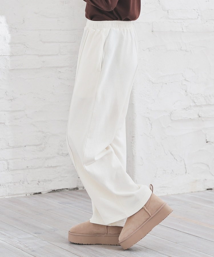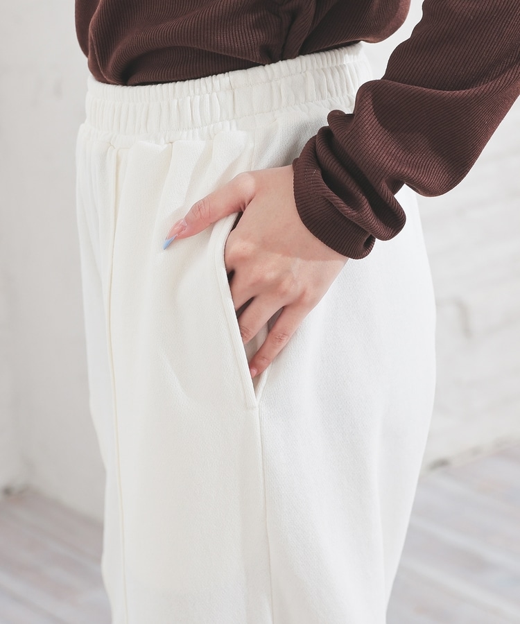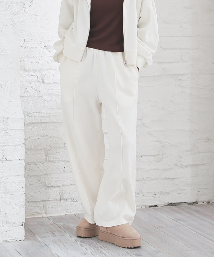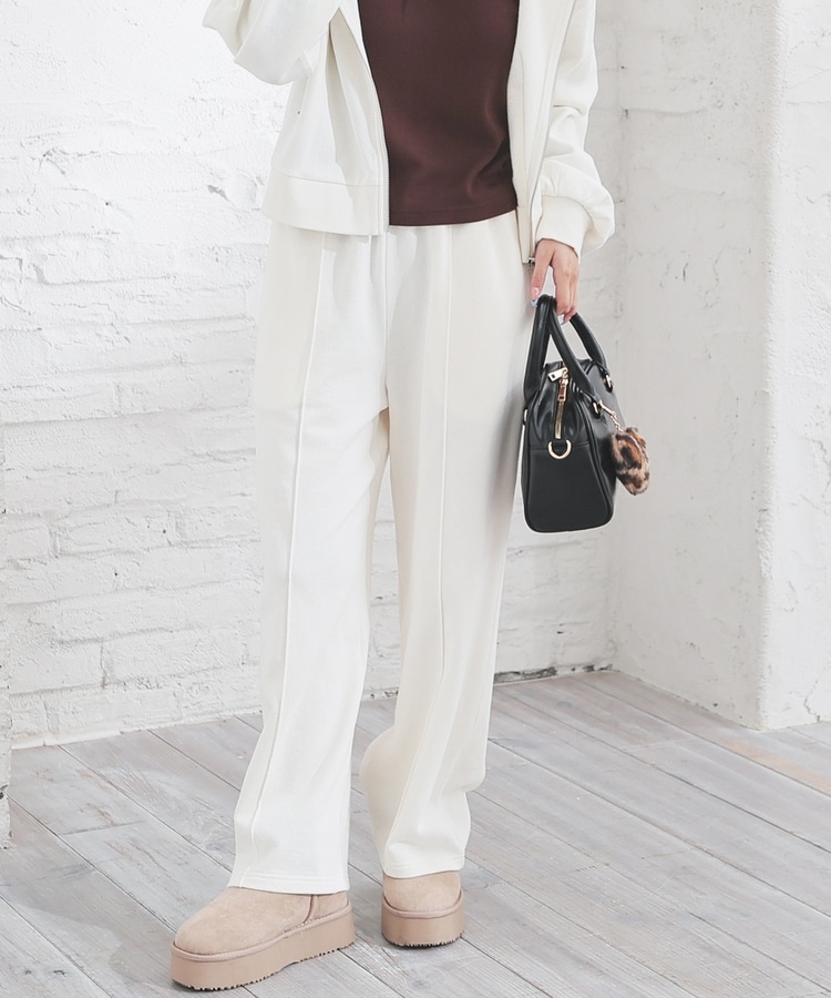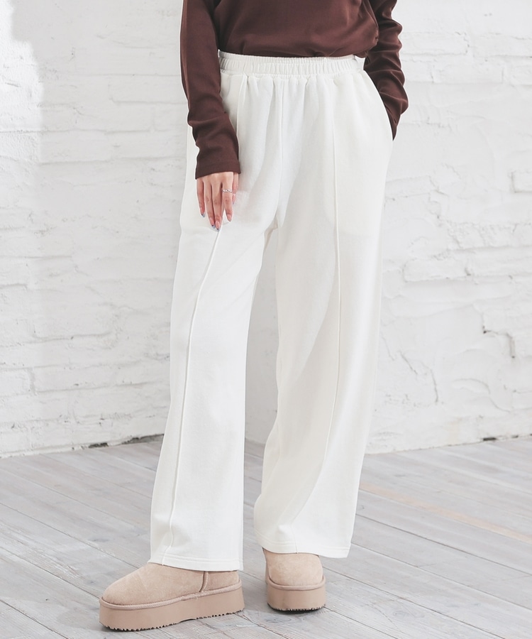 スウェットながらセンターシーム入りで、きちんと感も美脚効果も期待できるデザイン。