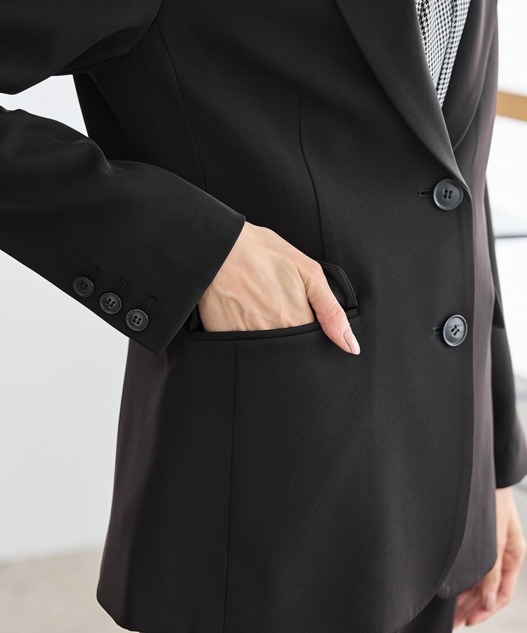 ベーシックなテーラードカラーの2つボタンタイプ。
