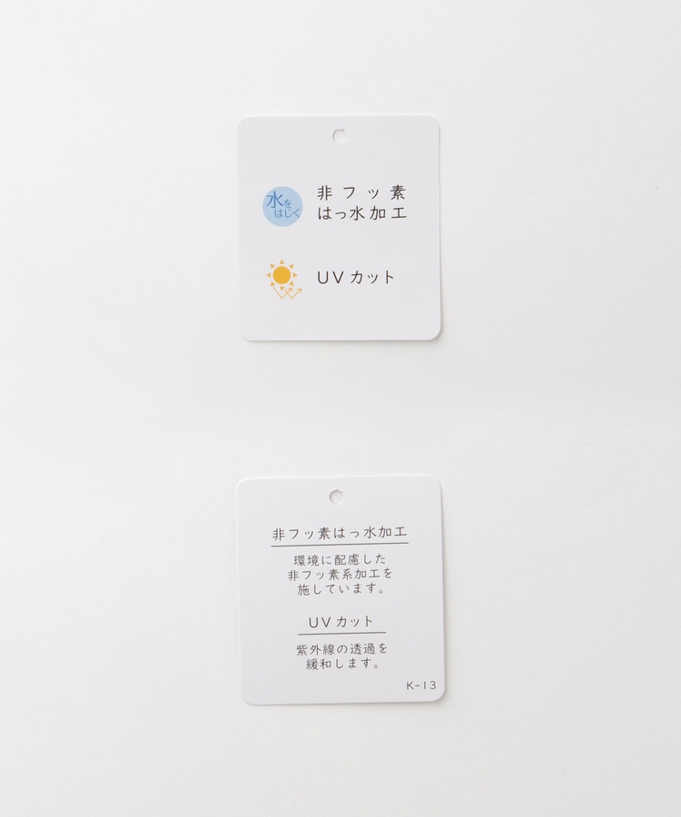 表面は雨や汚れをはじく『非フッ素撥水加工』と、紫外線対策ができる『UVカット』機能付き。