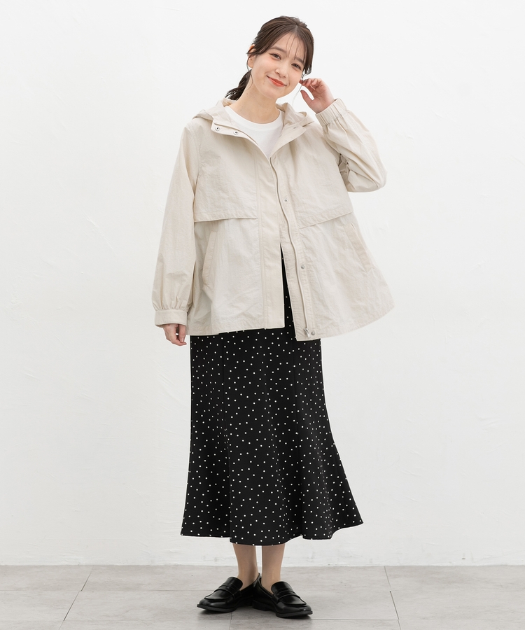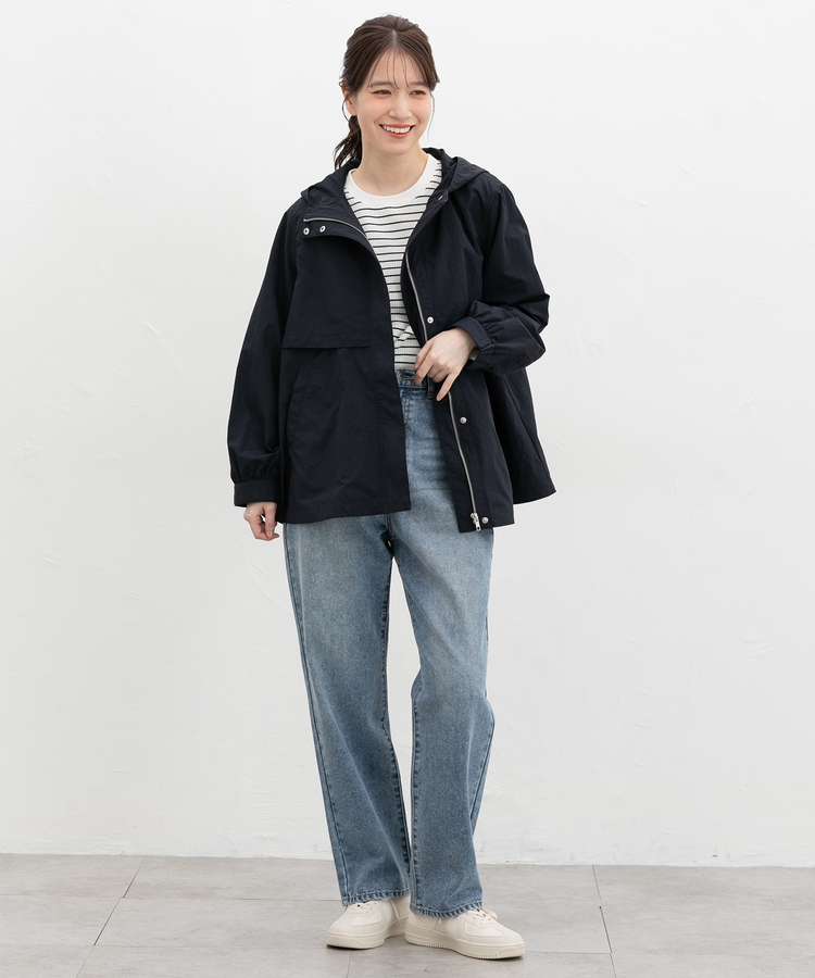 ゆったりした幅とヒップまですっぽり隠れるハーフ丈で、体型もカバー。