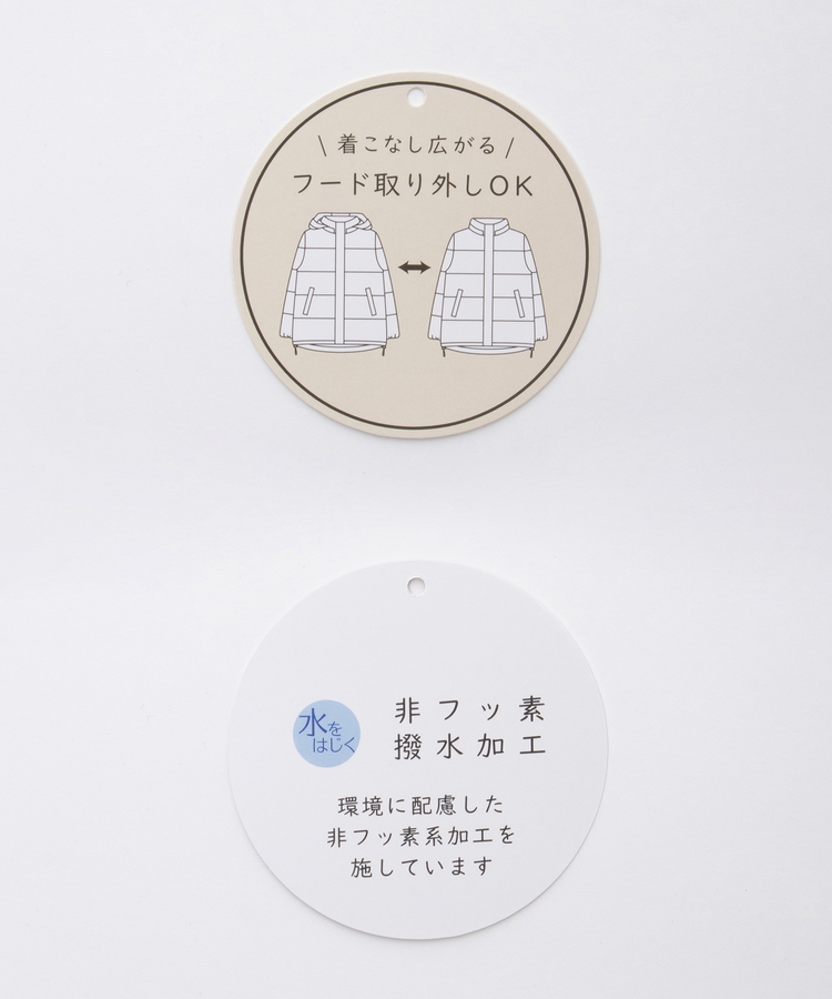 2WAYで楽しめる、取り外し可能なフード付きのシンプルデザイン。
