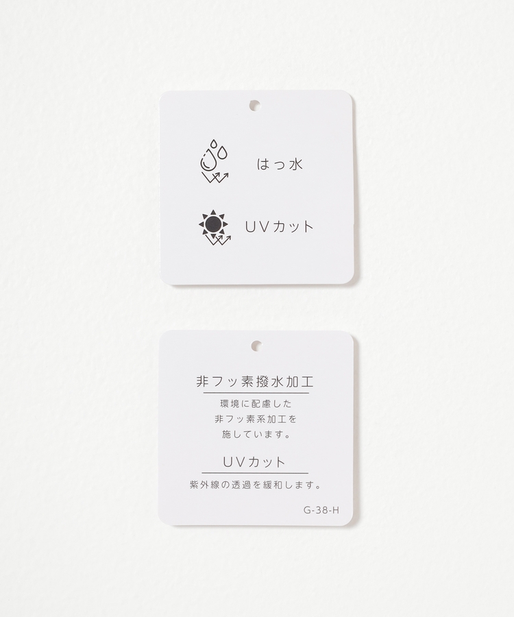 表面は、雨や汚れをはじく『非フッ素撥水加工』と、紫外線対策ができる『UVカット』の機能付き。
