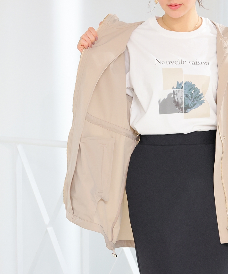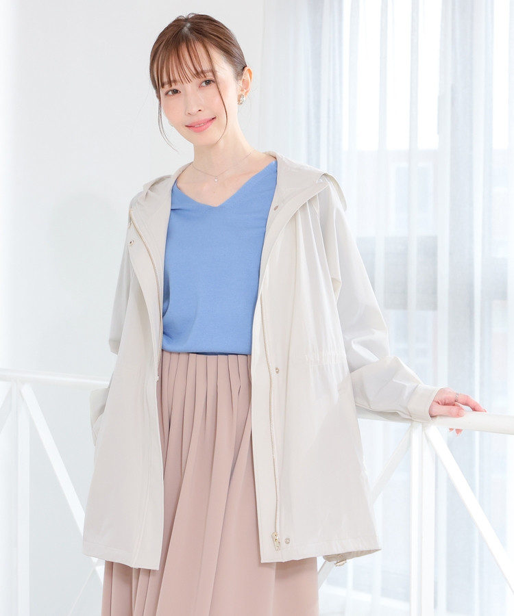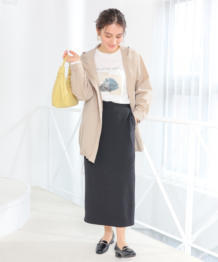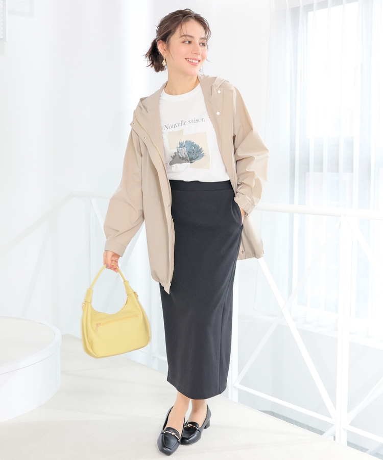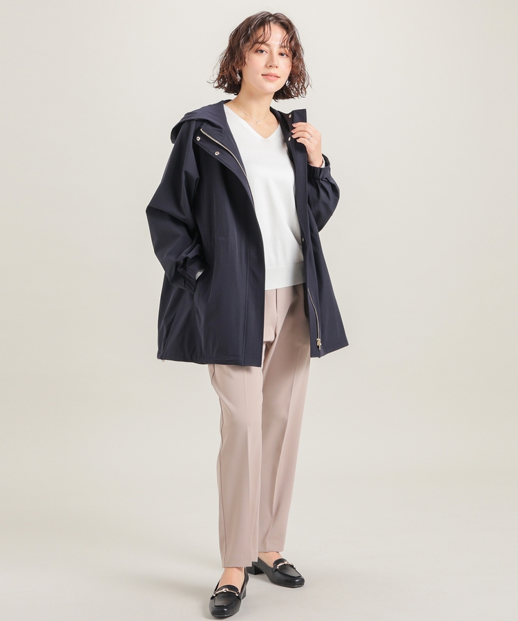 ゆったりした幅とヒップまですっぽり隠れる丈感で体型もカバー。