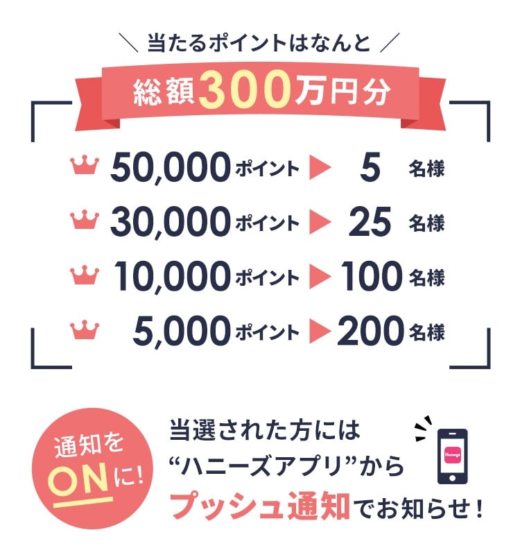 ※当選のご連絡は、5月下旬頃までにアプリのプッシュ通知機能でご連絡いたします。プッシュ通知を受け取れる設定にしていただきますようお願いいたします。