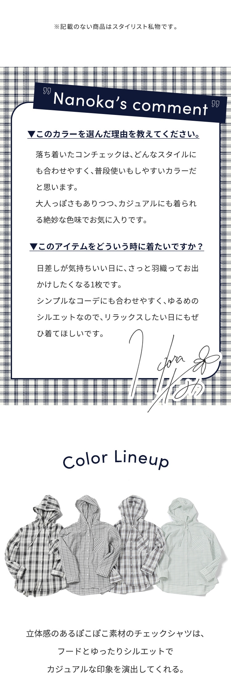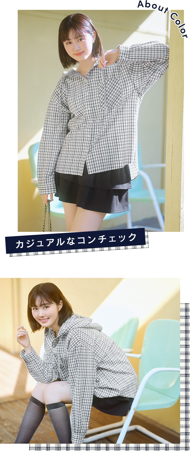フード付チェックシャツ