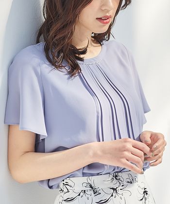 袖プリーツウォームブラウス