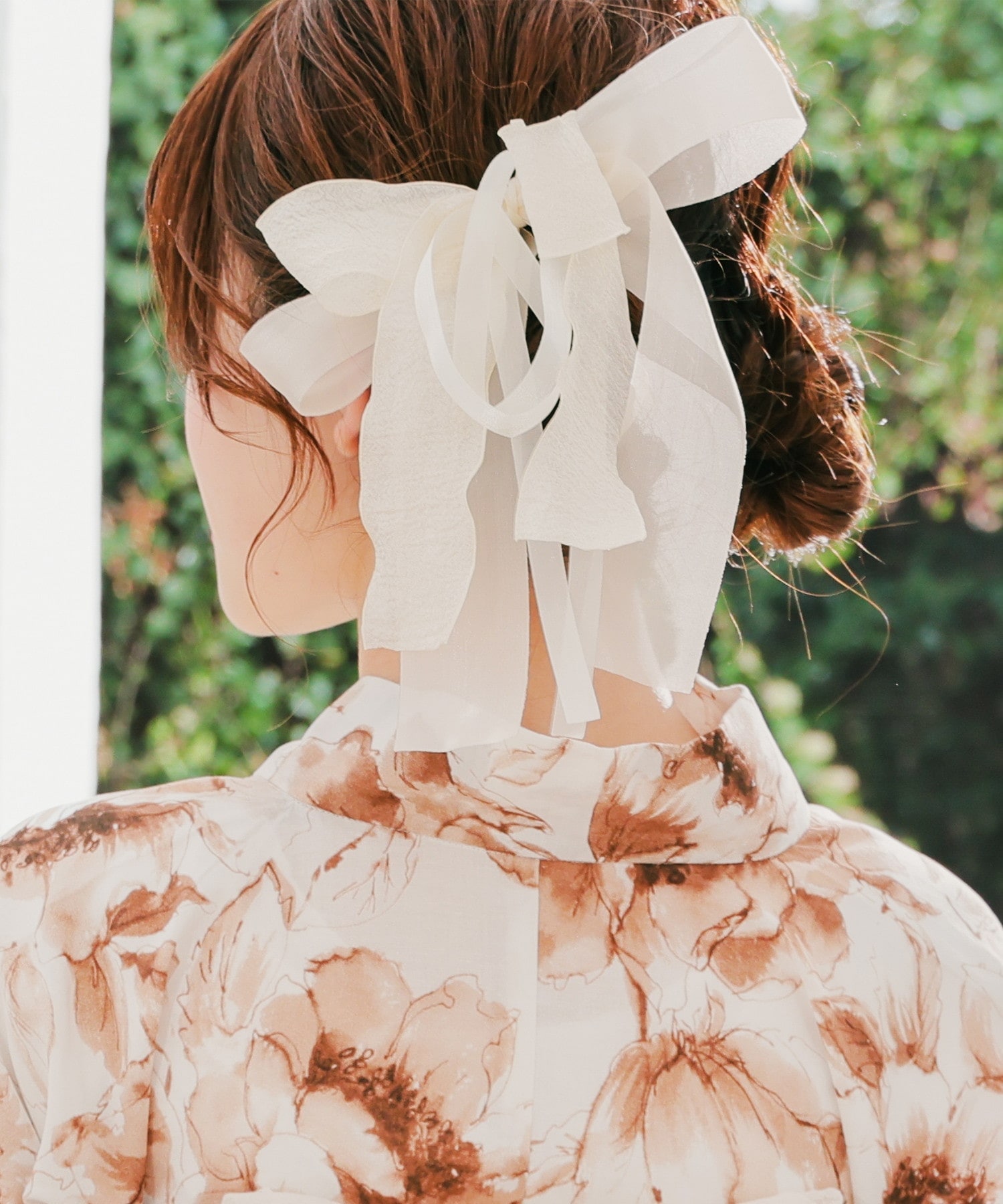 くしゅっとしたシワ加工がおしゃれなデザイン。ハリ感のある生地で、ボリュームのある華やかなリボン結びに♪