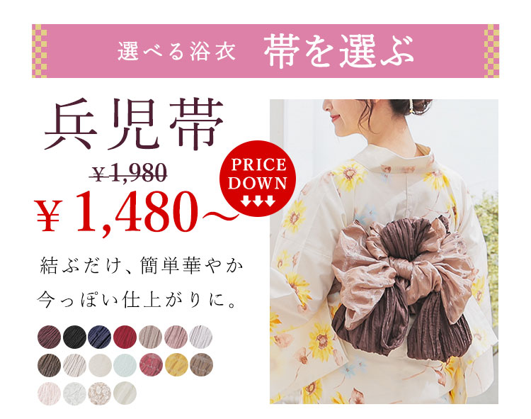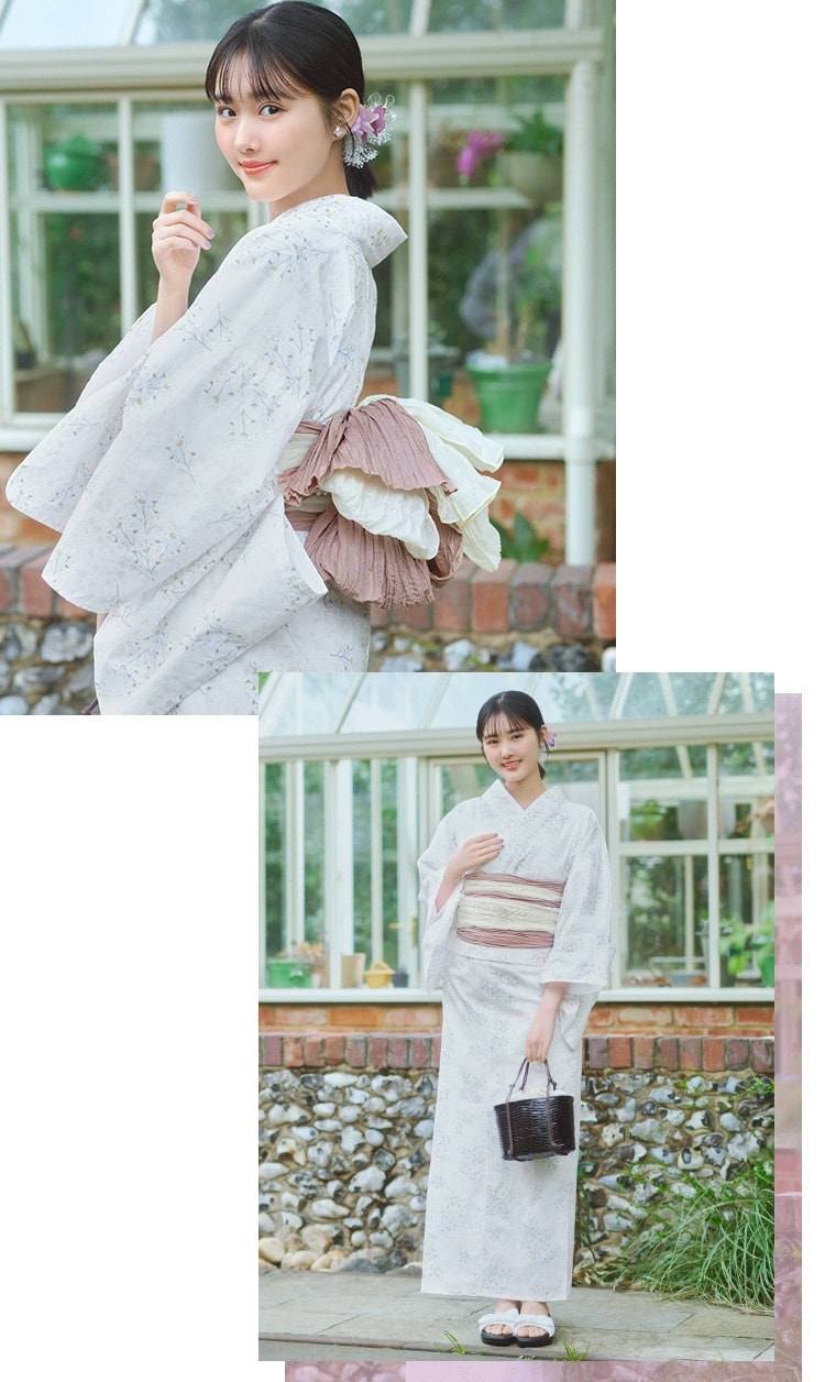 別売りの作り帯や兵児帯、バッグやアクセサリーと合わせて、自分らしい浴衣スタイルに♪