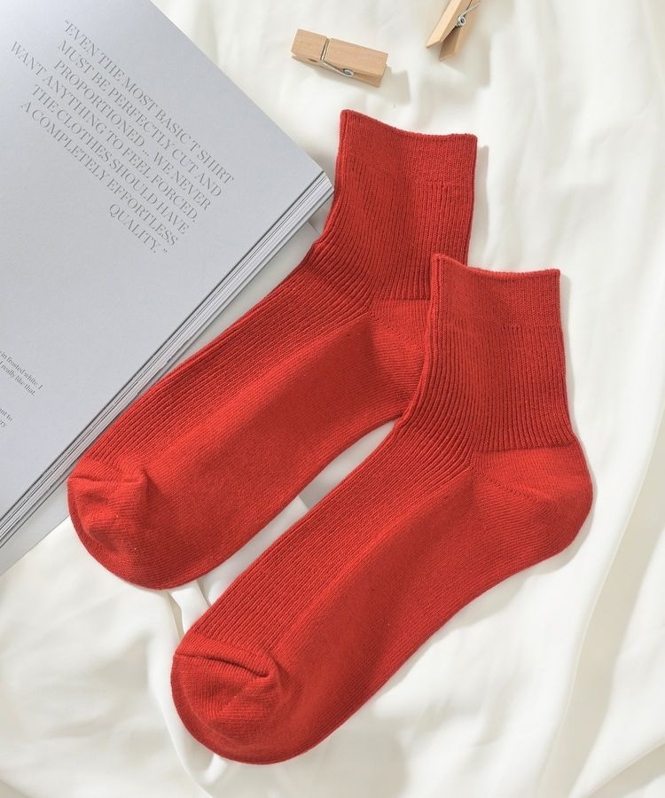 はき心地の良いリブ編みのシンプルな無地デザイン。