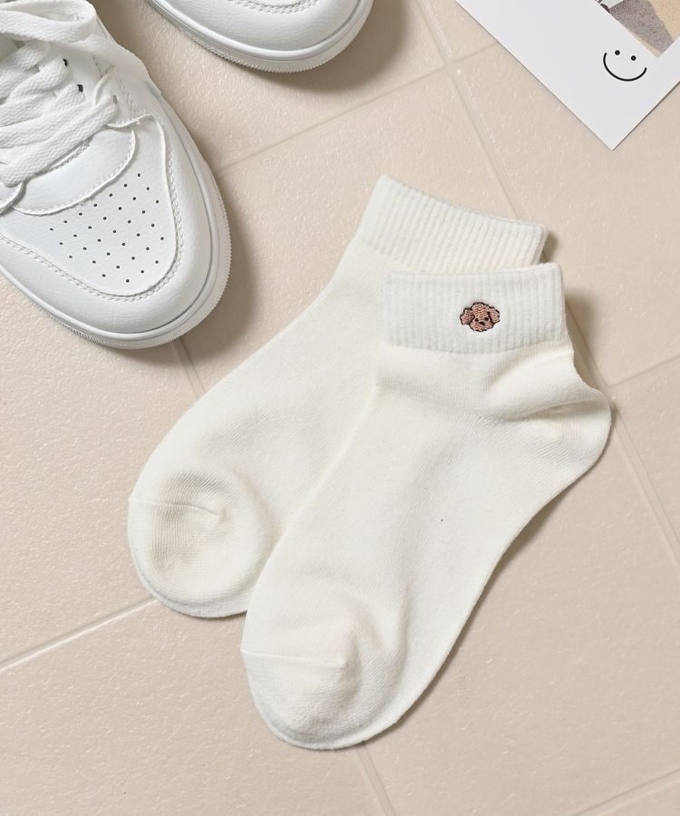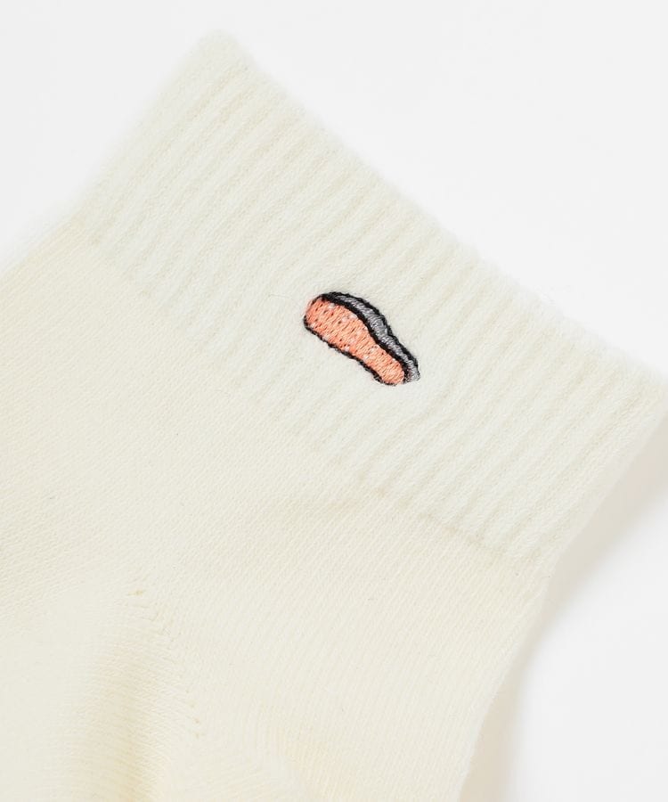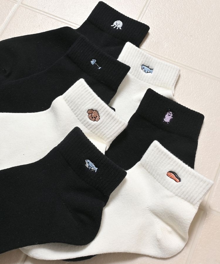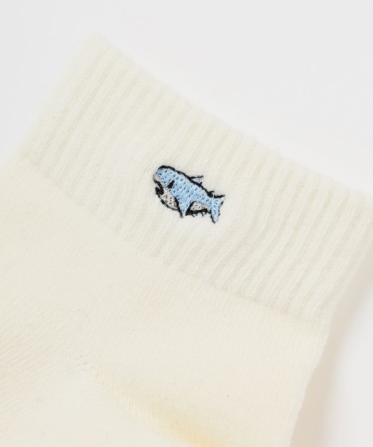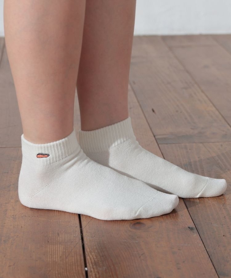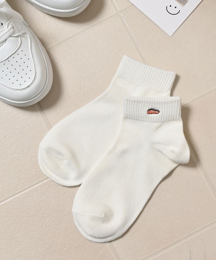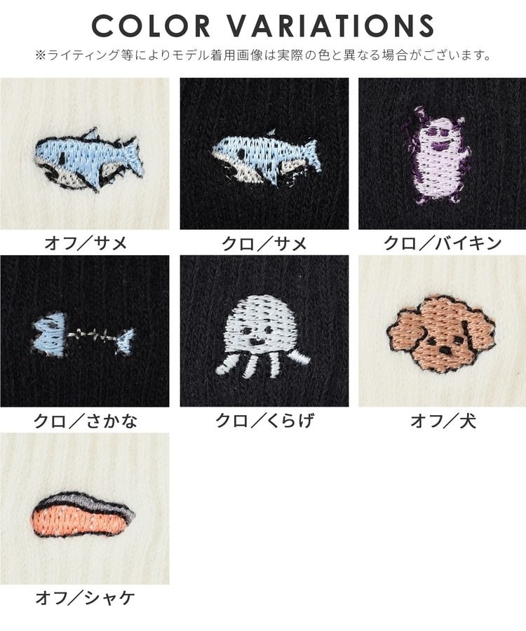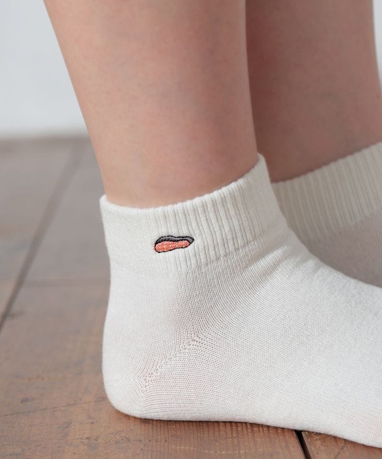食べ物やアニマルなどのほっこりユニークなワンポイント刺繍。