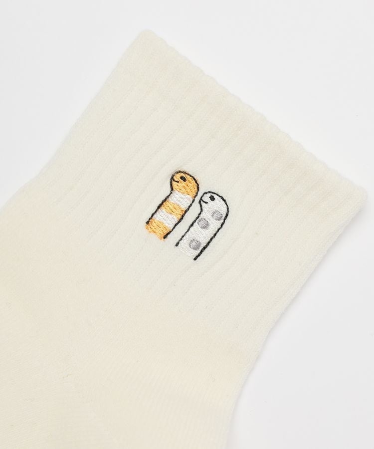 食べ物やアニマルなどのほっこりユニークなワンポイント刺繍。