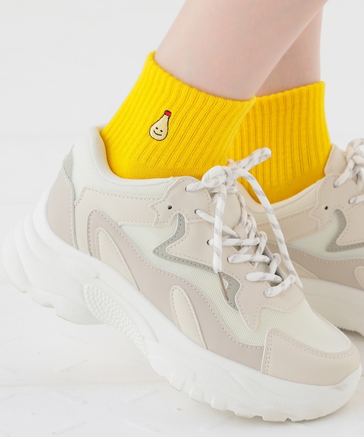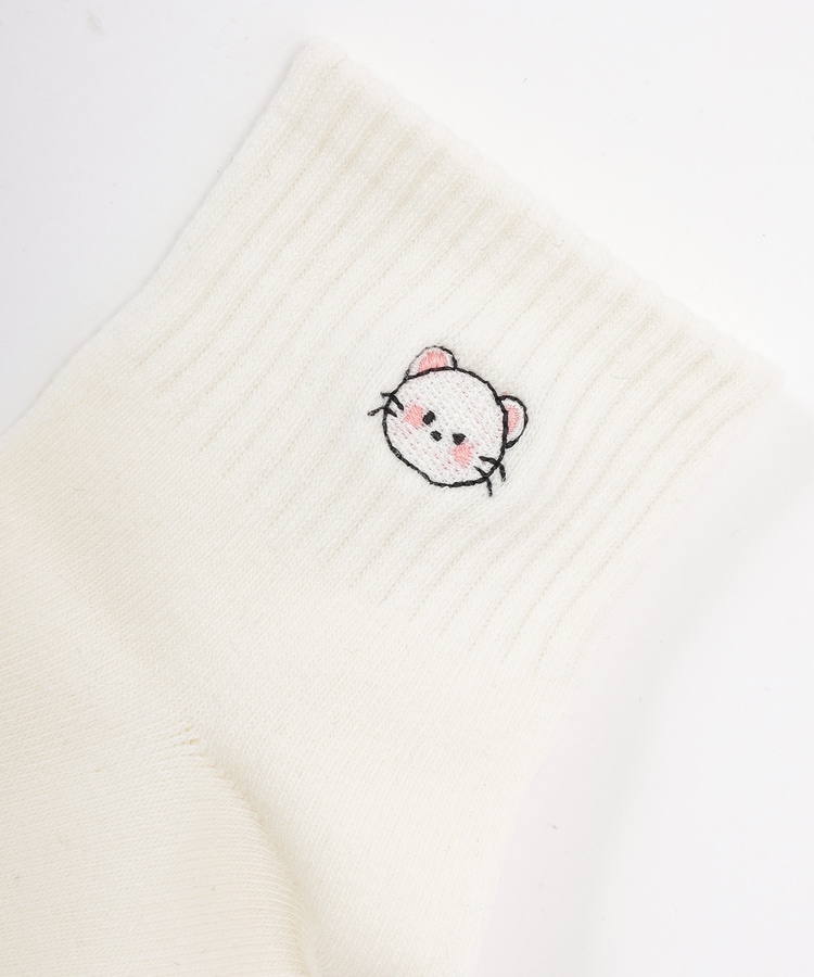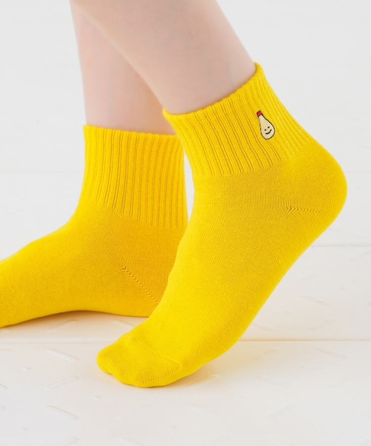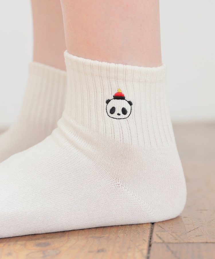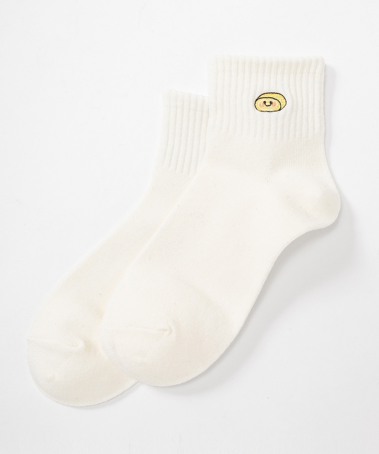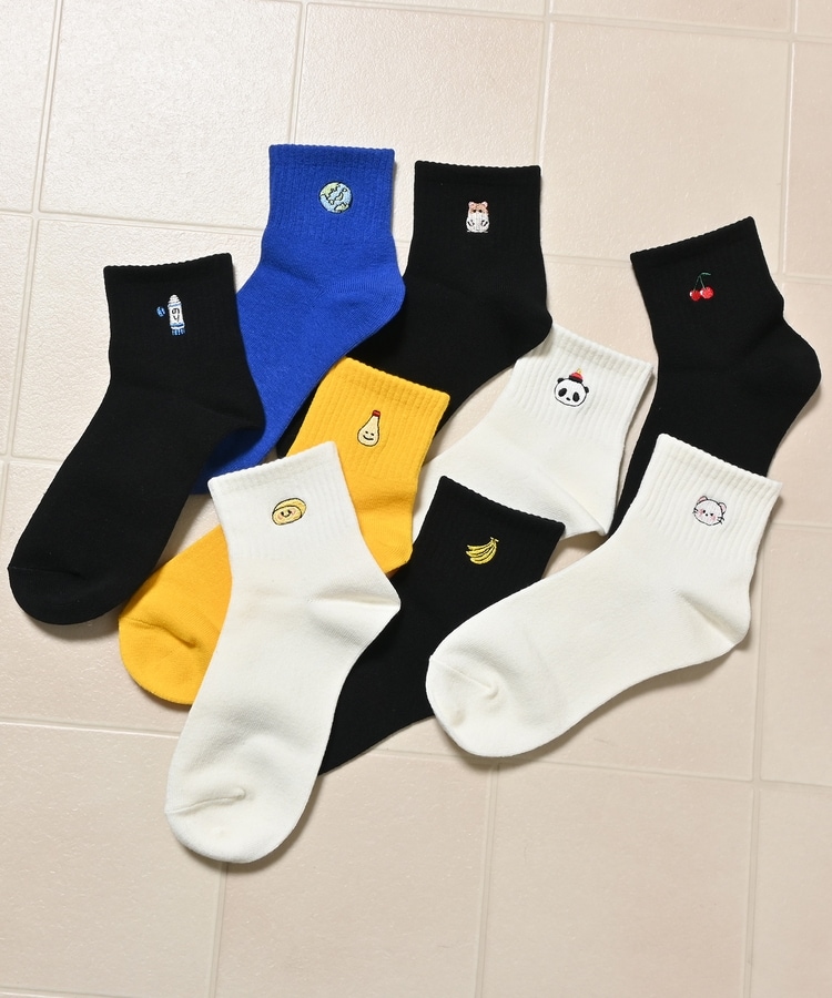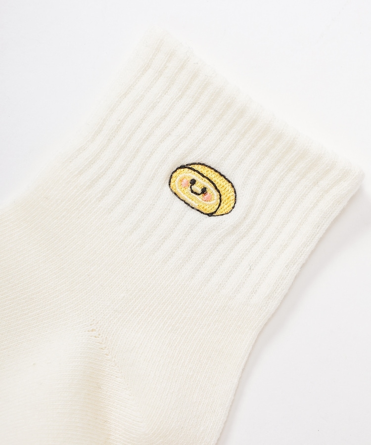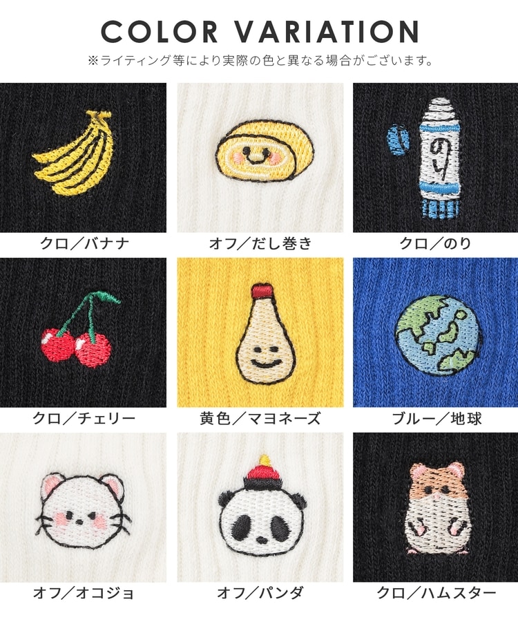 食べ物やアニマルなどのほっこりユニークなワンポイント刺繍。