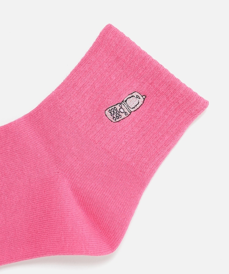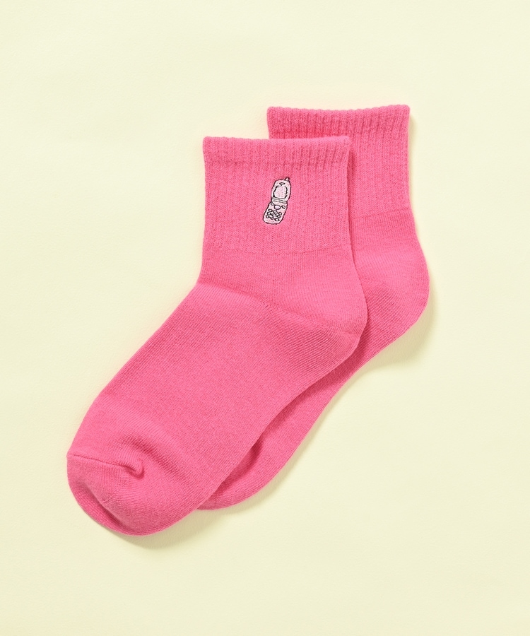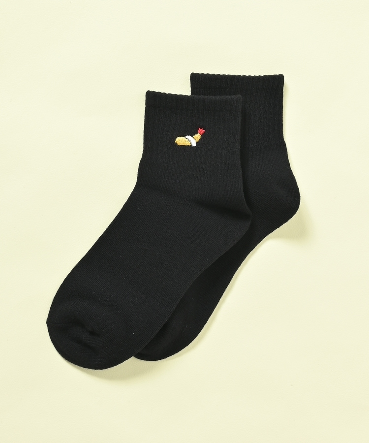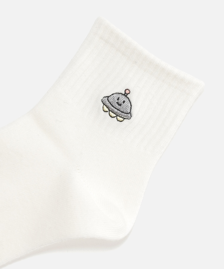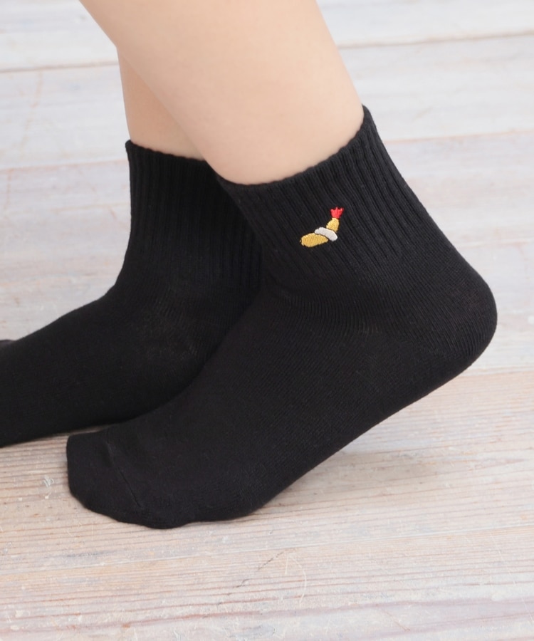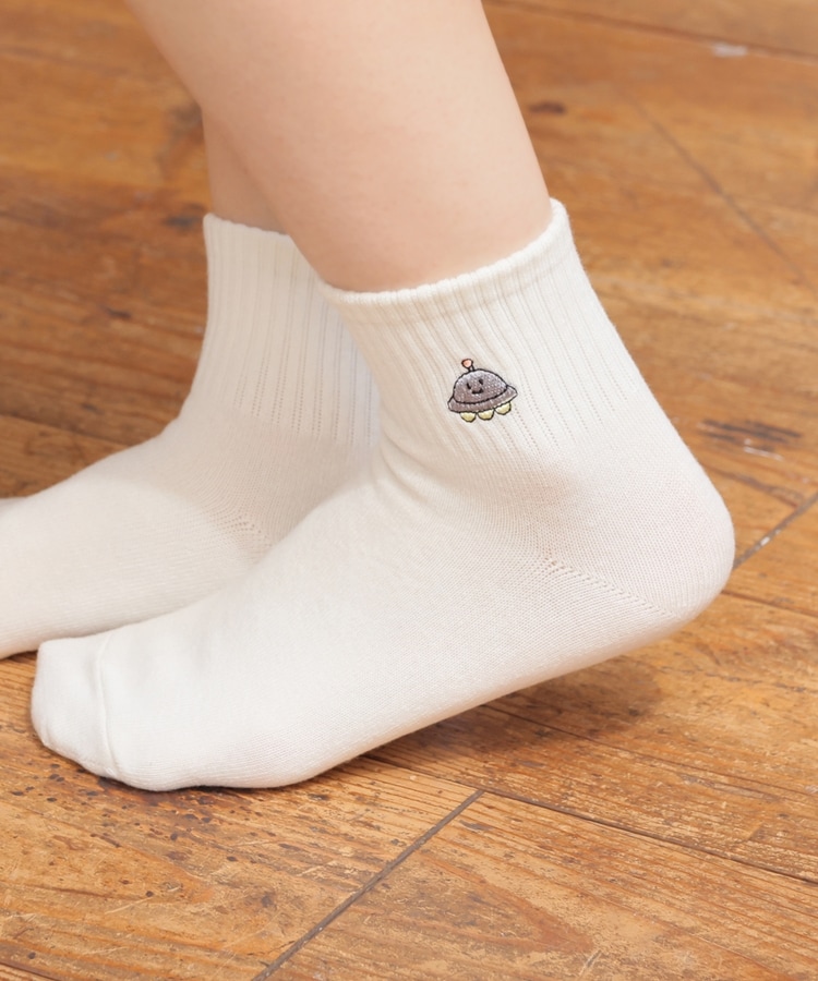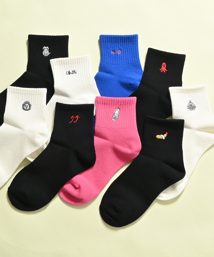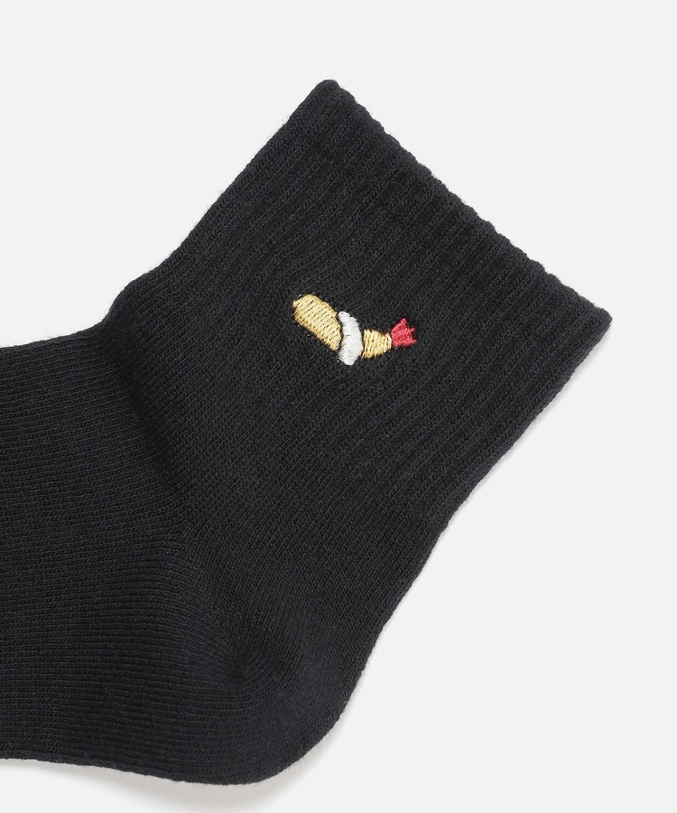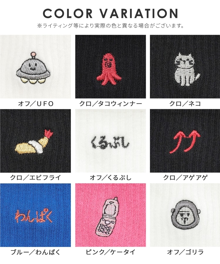 食べ物やアニマルなどのほっこりユニークなワンポイント刺繍。