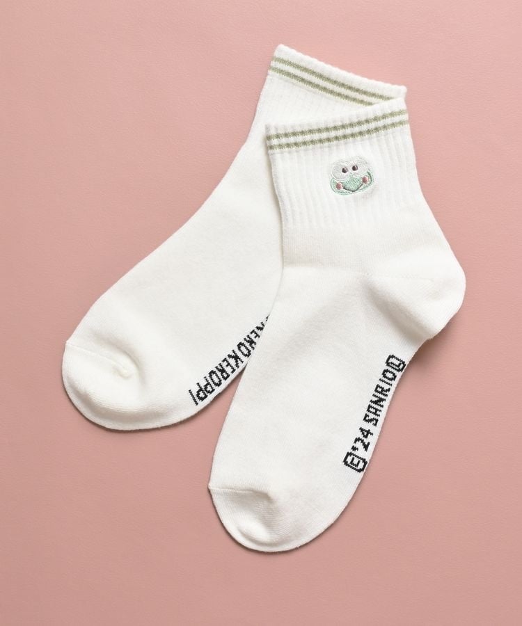 スポーティーなダブルライン使い×キュートなキャラ刺繍の新鮮なデザイン。