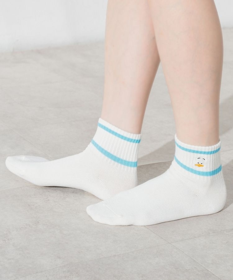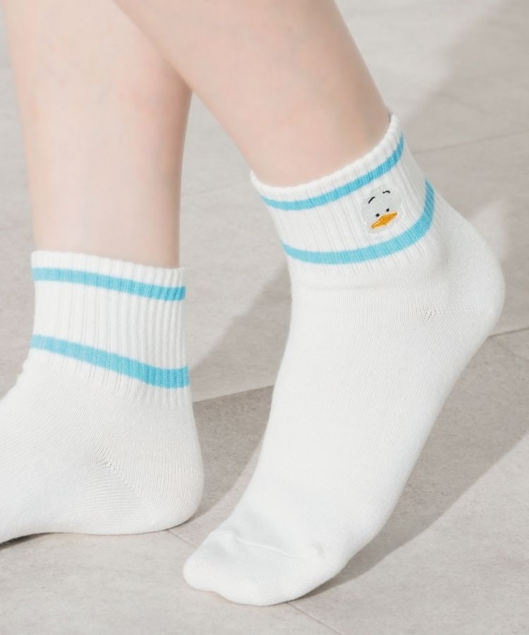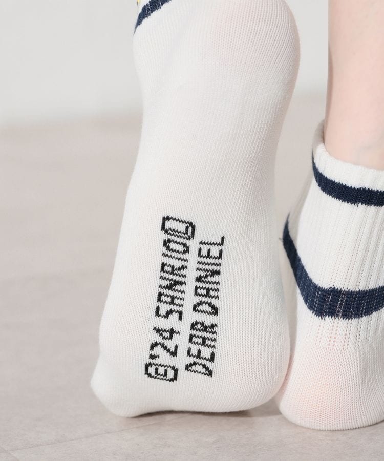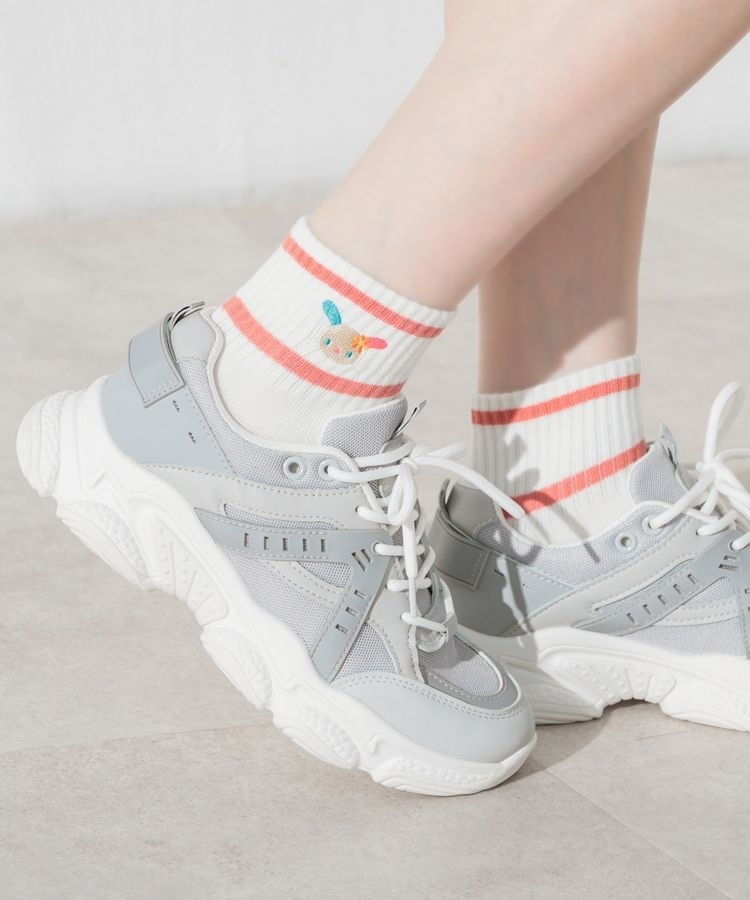 スポーティーなライン使い×キュートなキャラ刺繍の新鮮なデザイン。