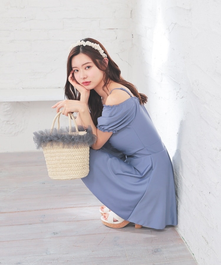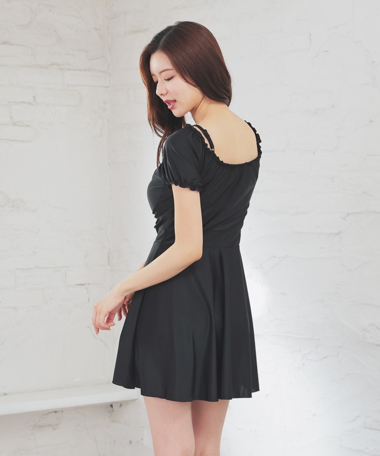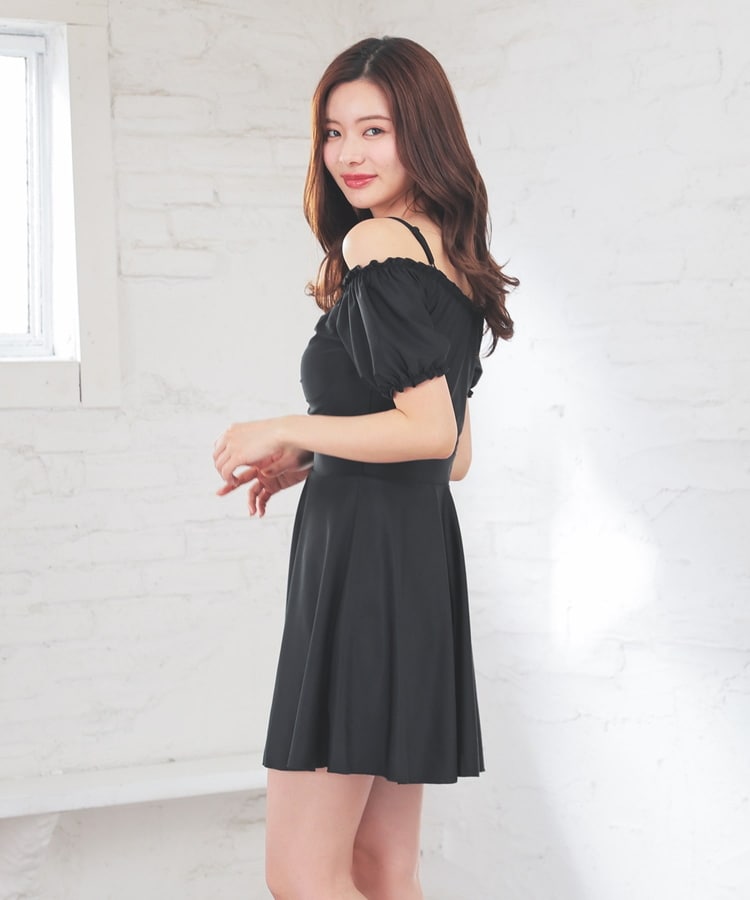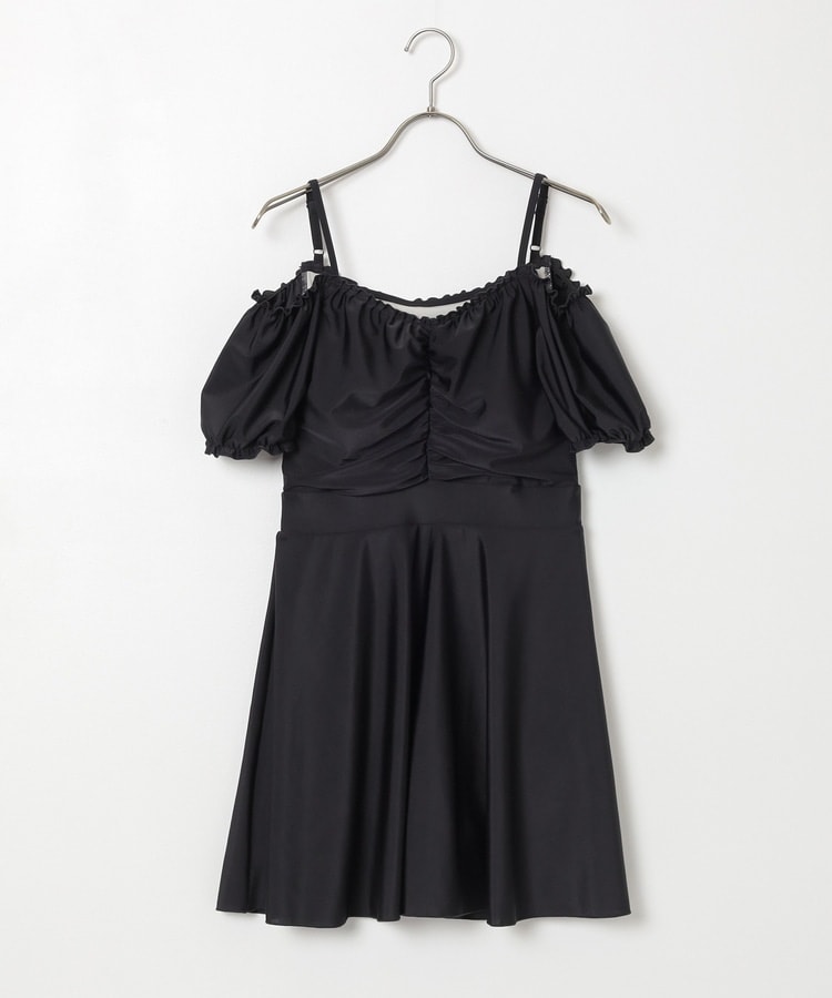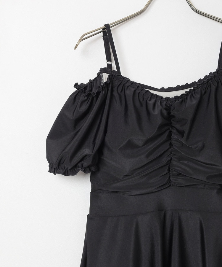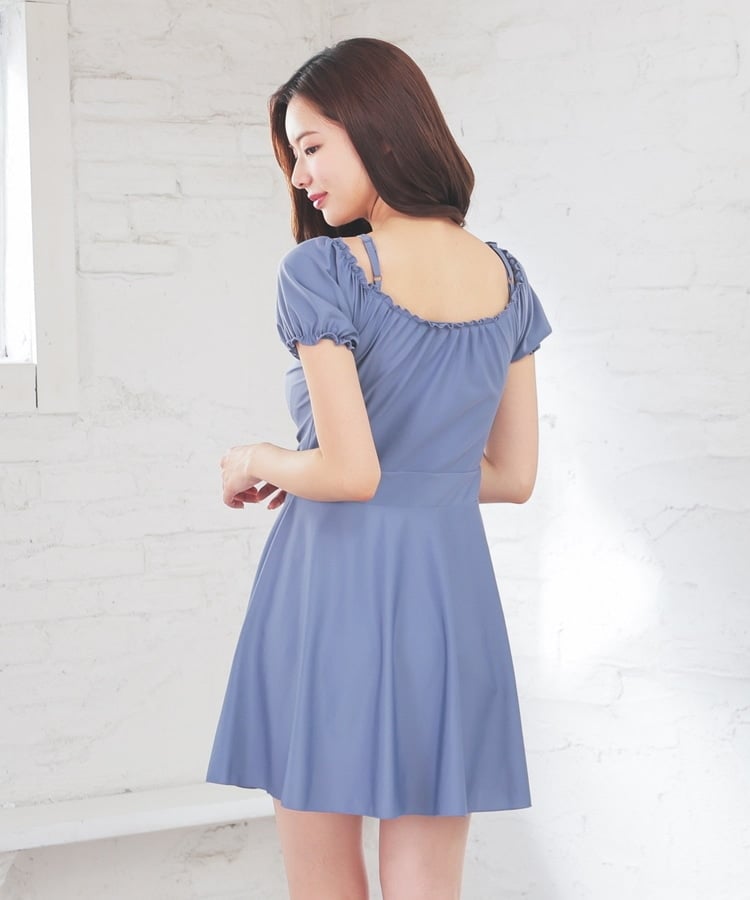 ふんわり広がるフレアシルエットに、胸元のギャザーがアクセント。