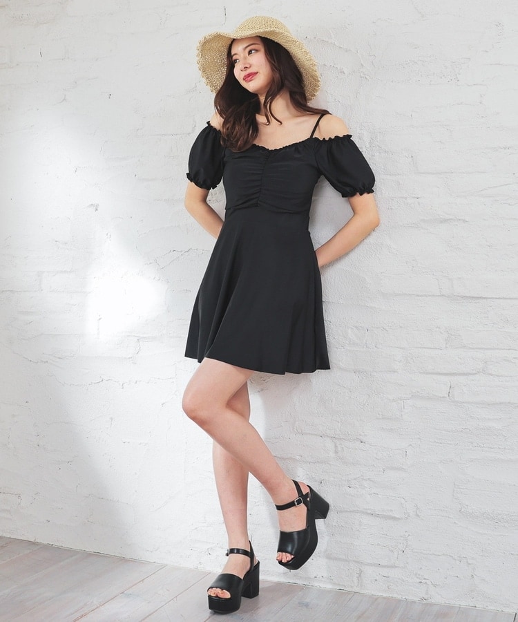 肩をずらすとオフショルダー風にもアレンジが楽しめ、夏のビーチスタイルにぴったり。