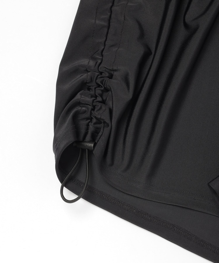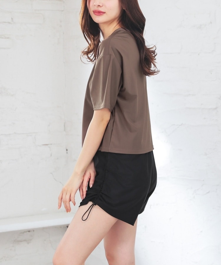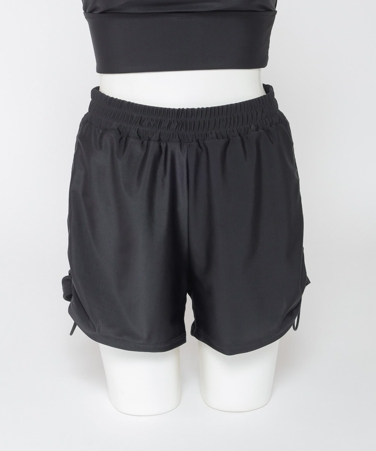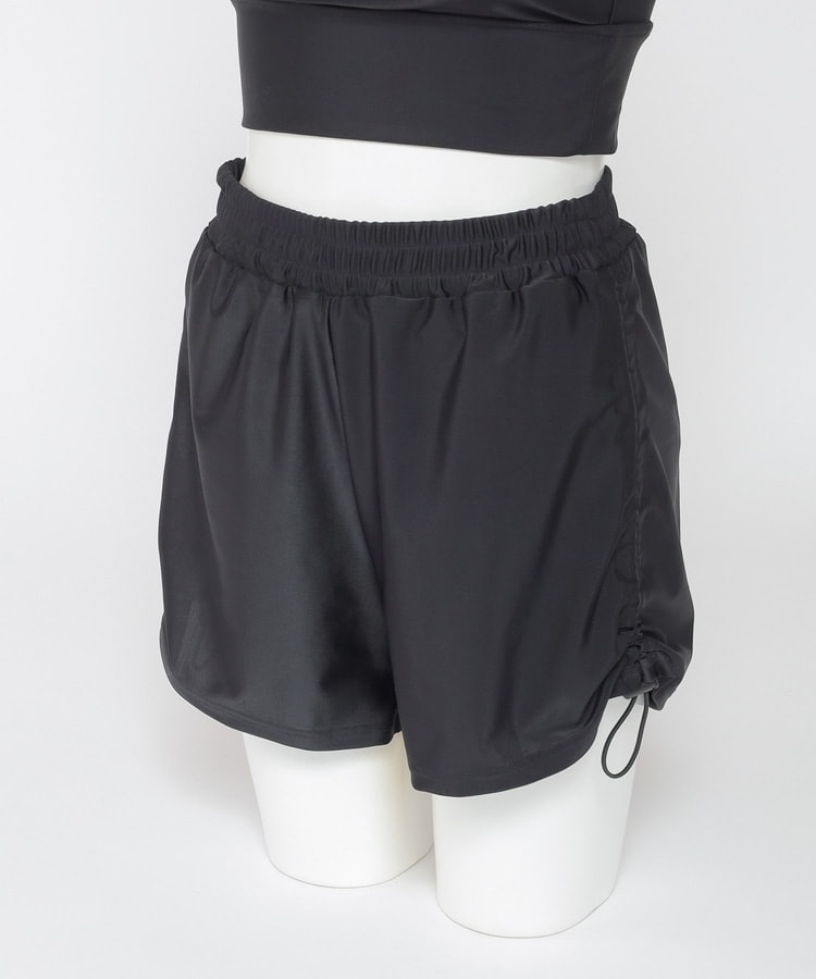 ショートパンツはサイドのドロストのくしゅっとギャザーでスポーティーな雰囲気に。
