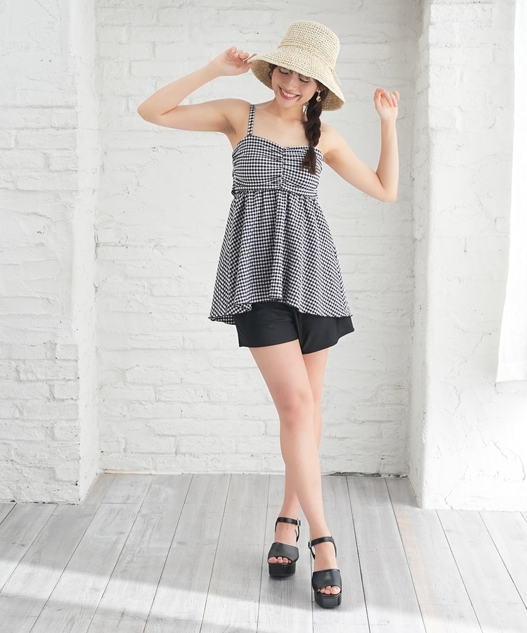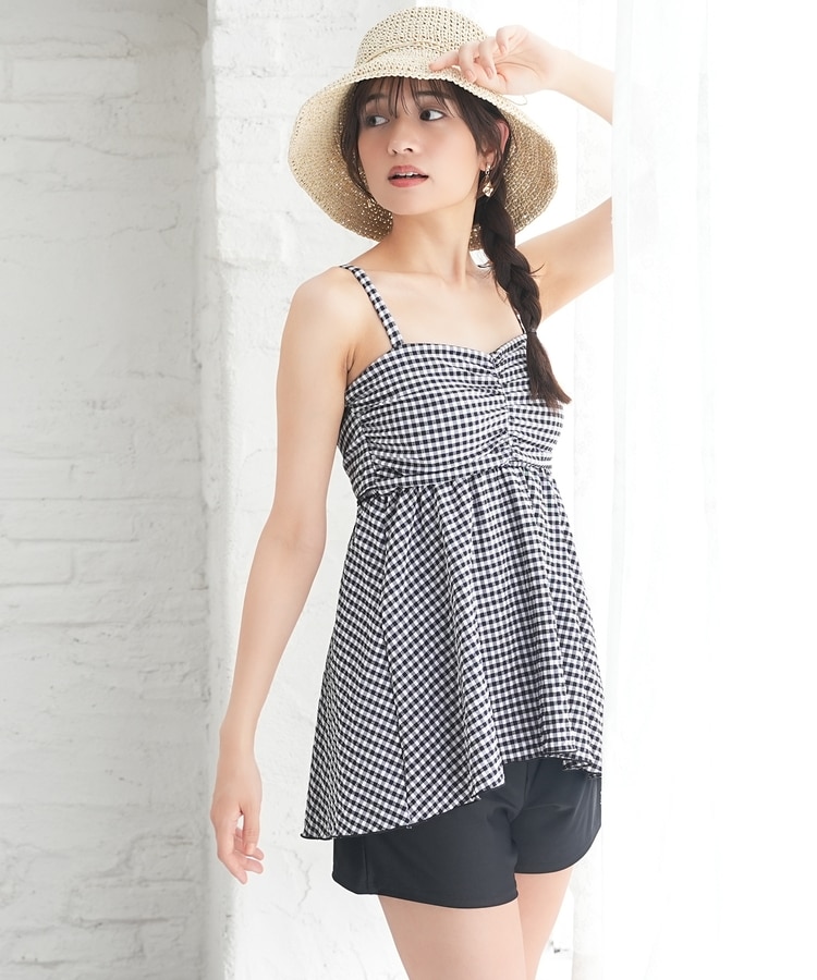 ●品質/表地 ポリエステル 85%・ポリウレタン 15%・裏地 ポリエステル 97%・ポリウレタン 3%・※ギンガムチェックのみ トップス ポリエステル 46%・ナイロン 44%・ポリウレタン 10%・ボトムス ポリエステル 85%・ポリウレタン 15%・裏地 ポリエステル 97%・ポリウレタン 3%