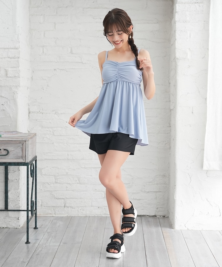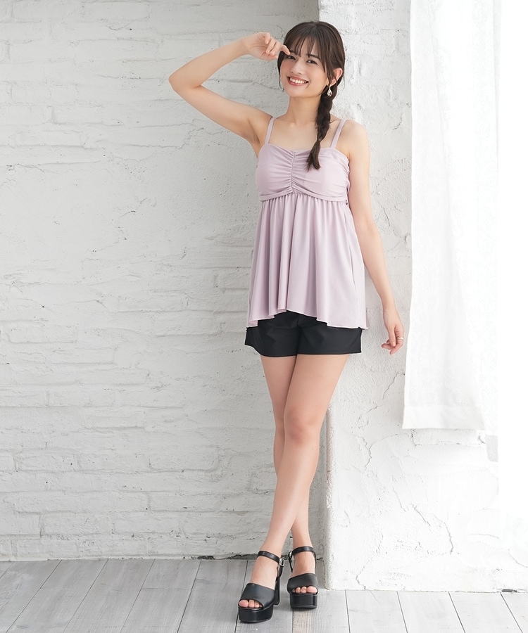 インナー、一体型のショートパンツでアクティブに動いても安心して着用可。