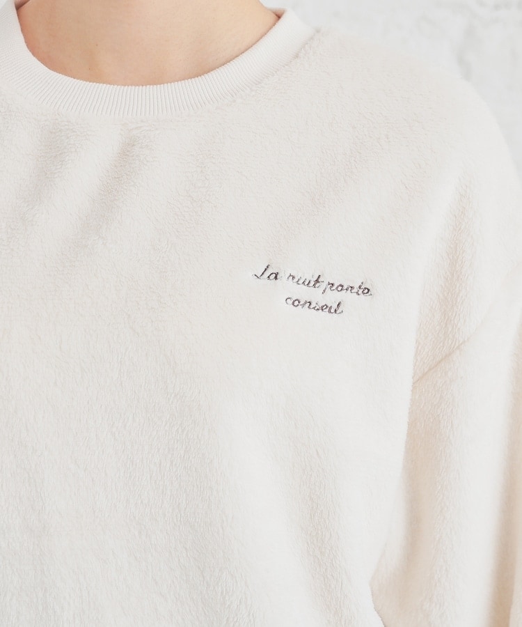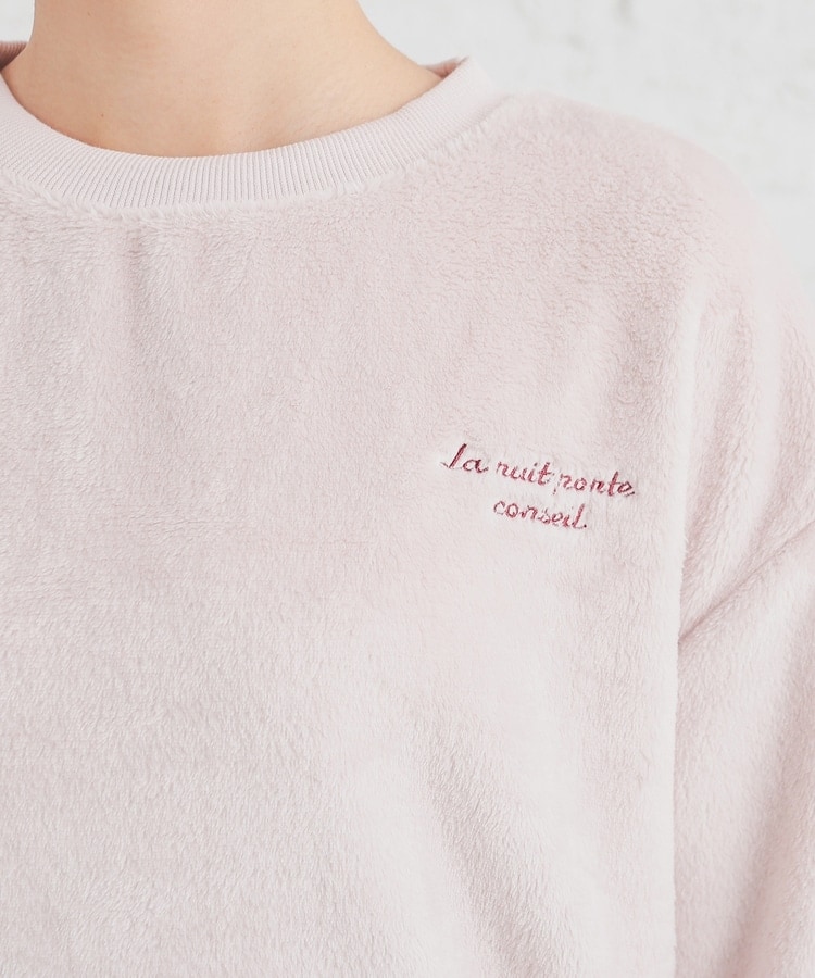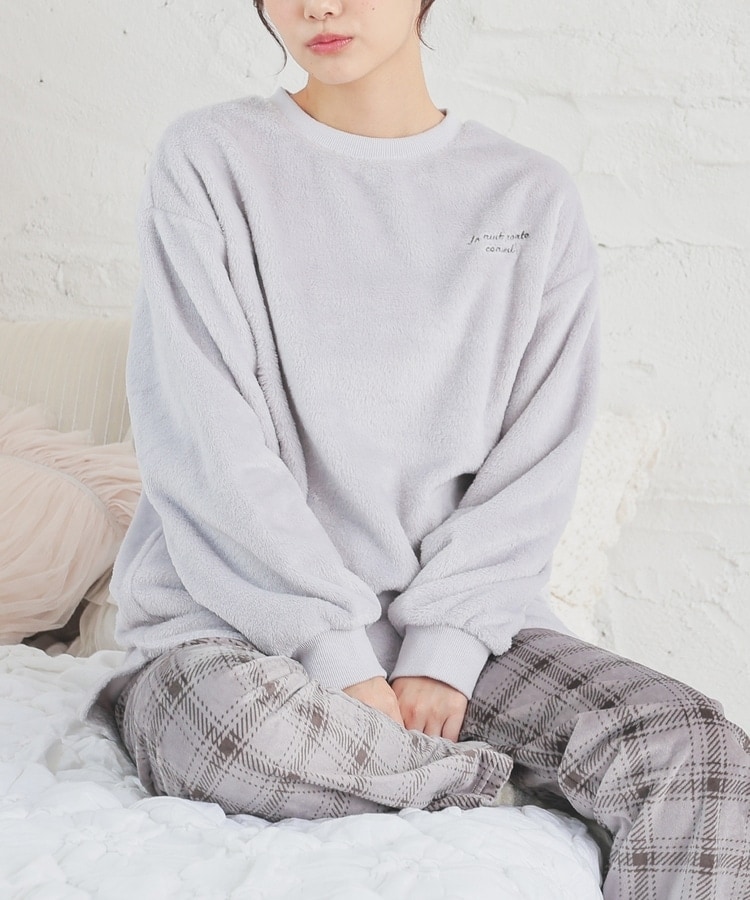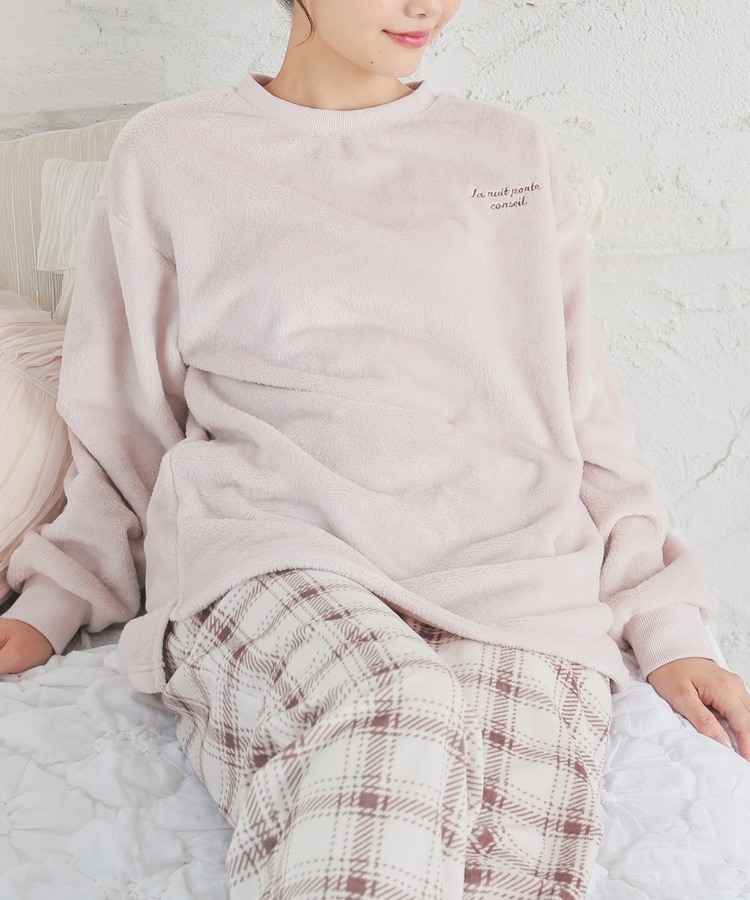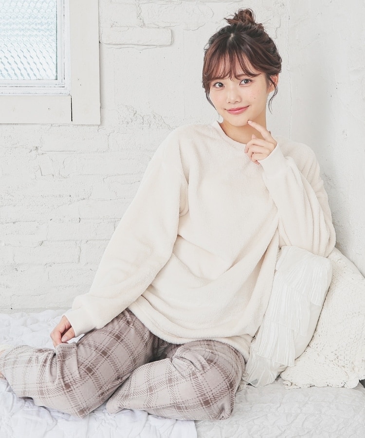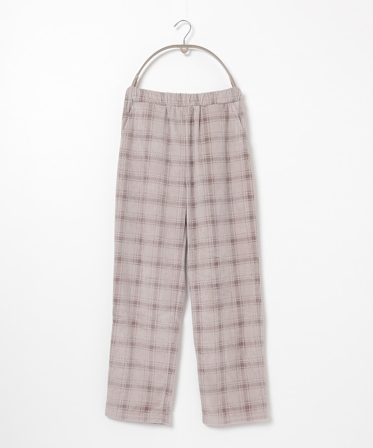 ボトムスは保温性抜群のフリース素材で、両サイドに便利なポケットと、ウエストにサイズ調整ができる紐付き。