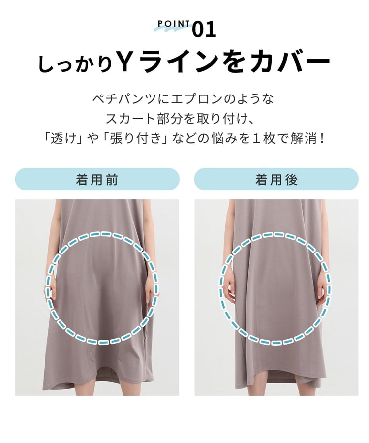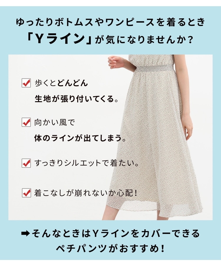 気になるYラインをしっかりカバーし、「透け」や「張り付き」などの悩みを1枚で解消!