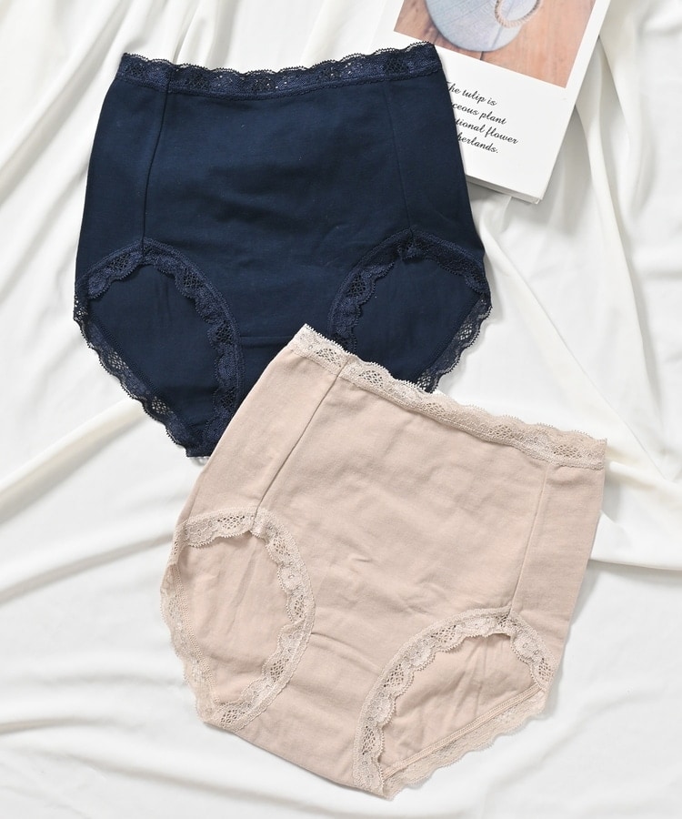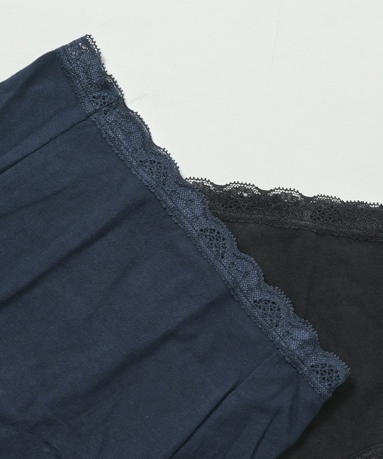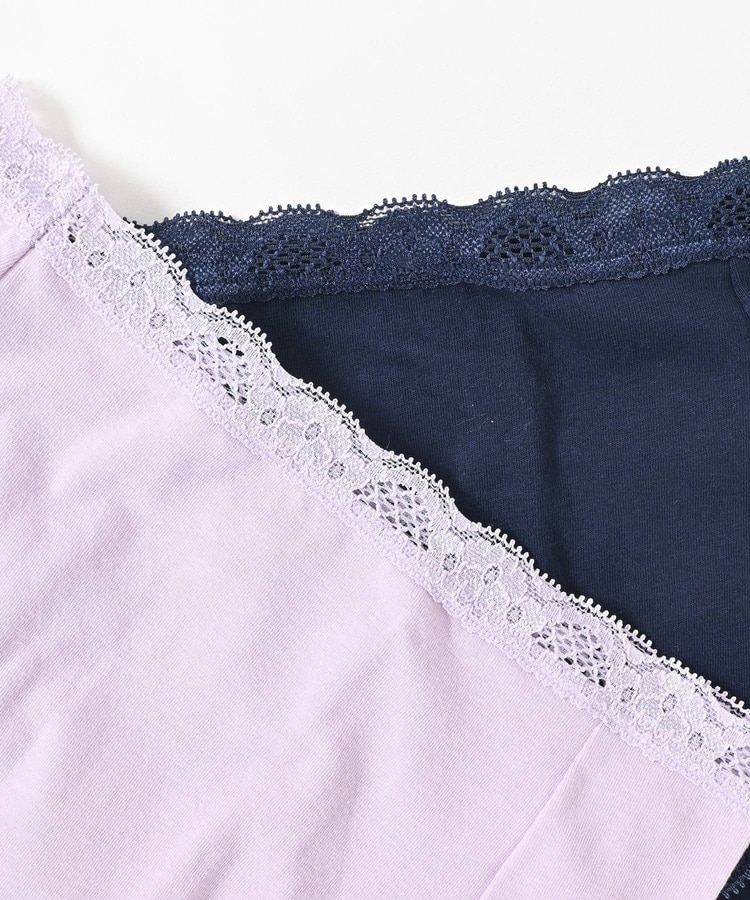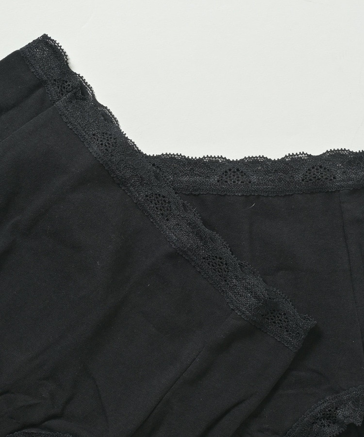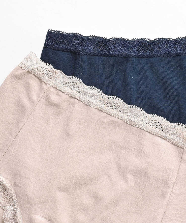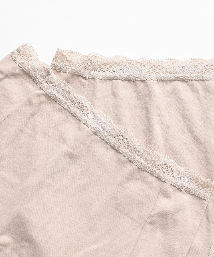 ウエスト・脚ぐりは締め付けず楽ちんなレース付きで、ボトムスにひびきにくいのもポイント◎