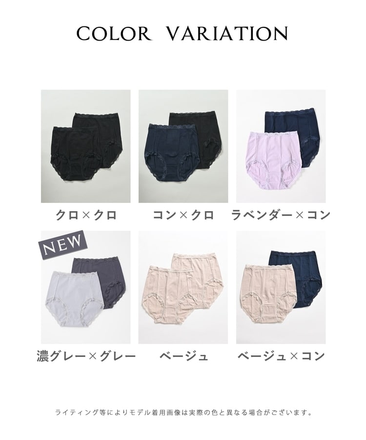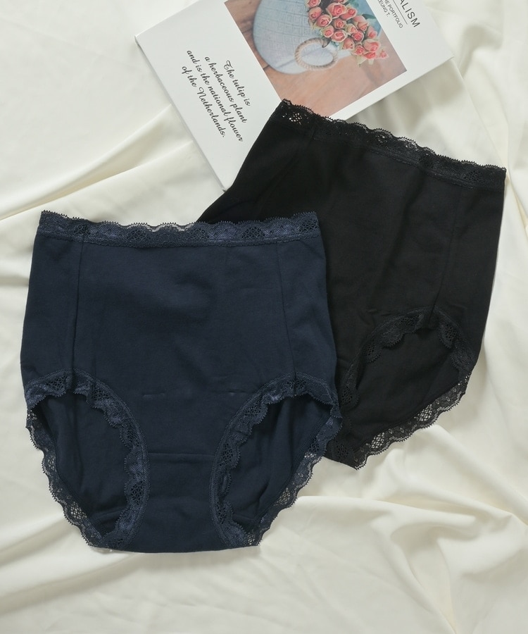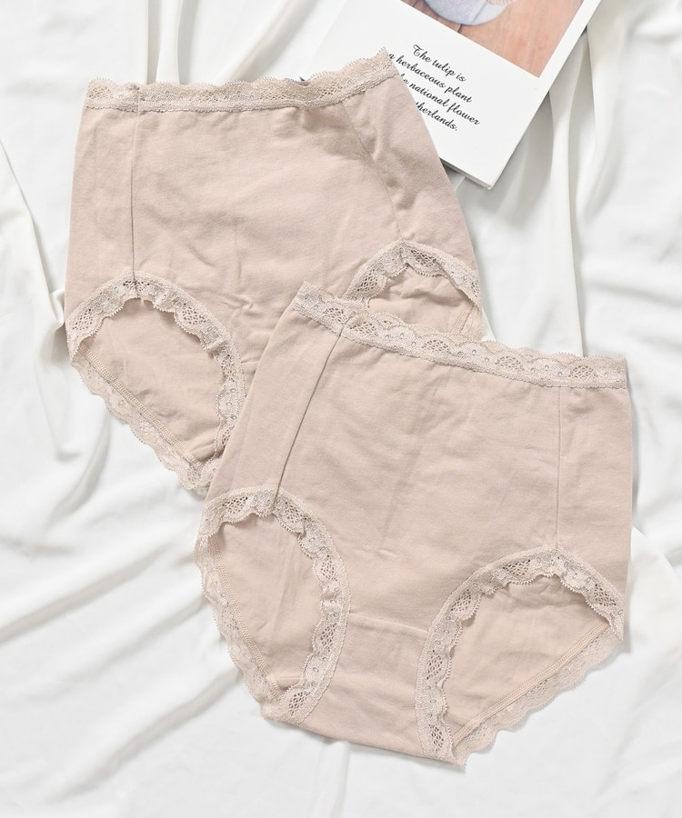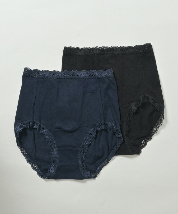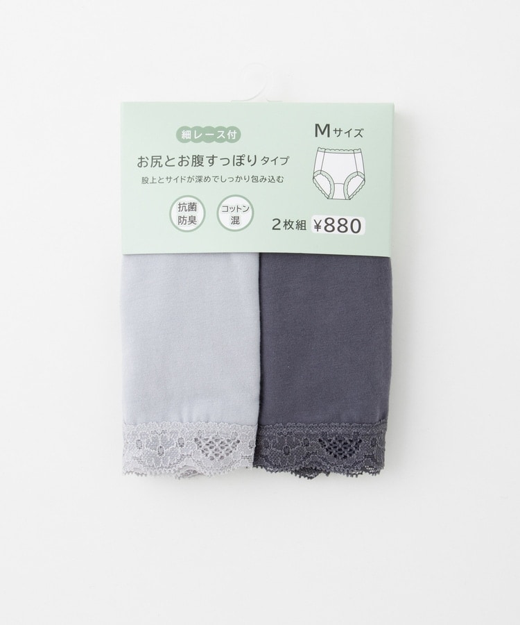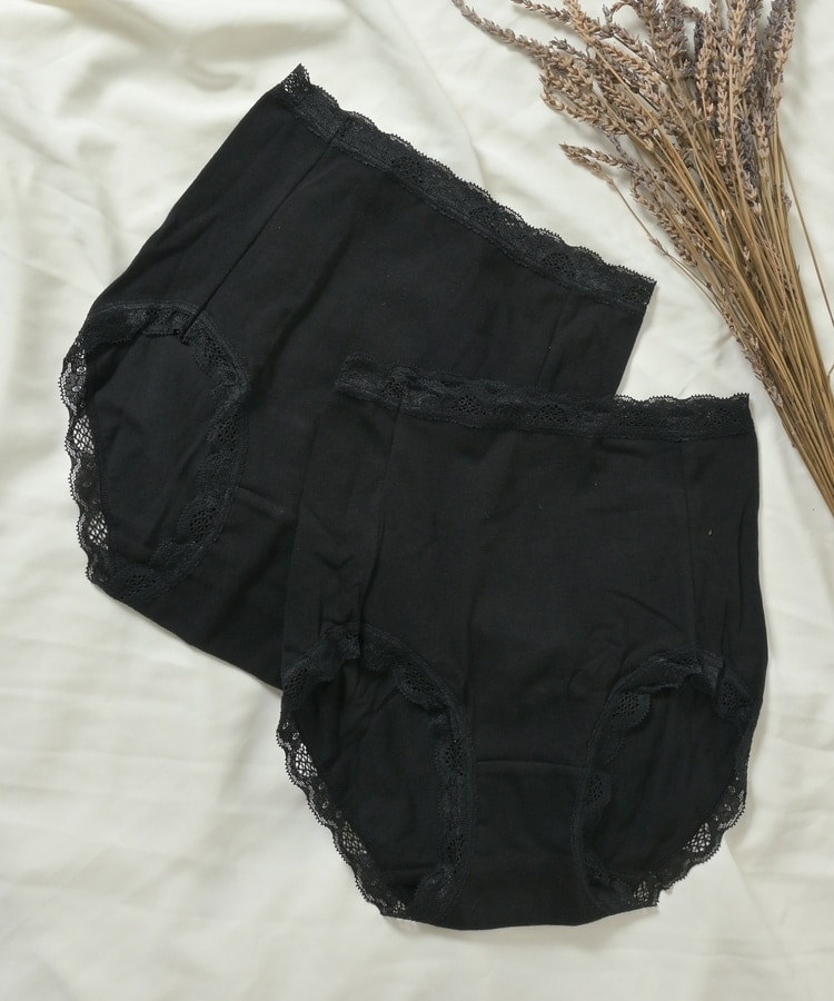 ウエスト・脚ぐりは締め付けず楽ちんなレース付きで、ボトムスにひびきにくいのもポイント◎