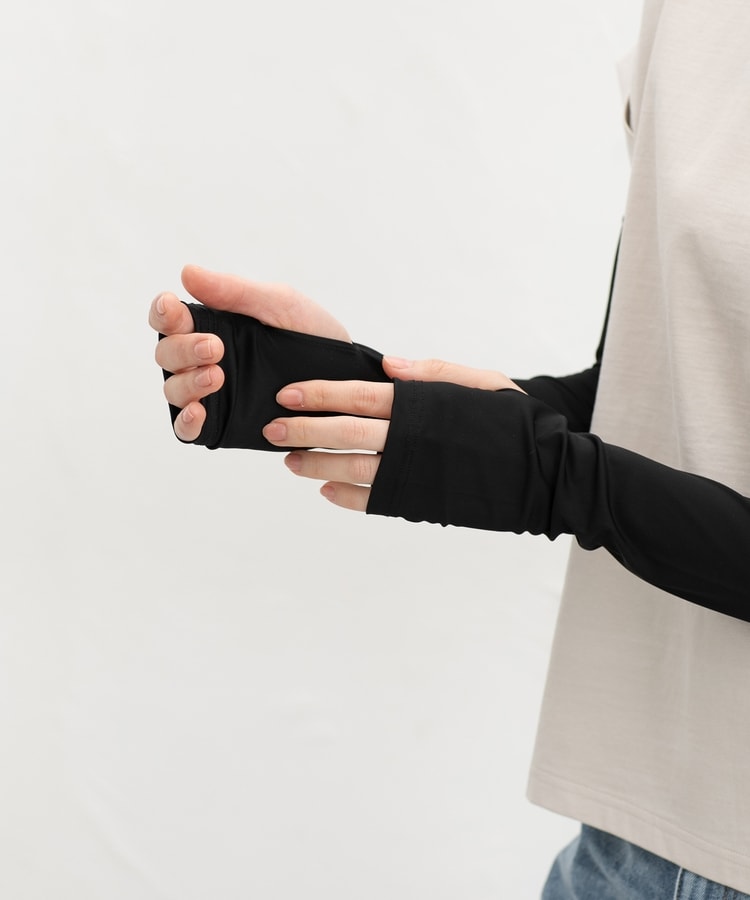 手の甲までしっかりガードする指穴付きデザイン。