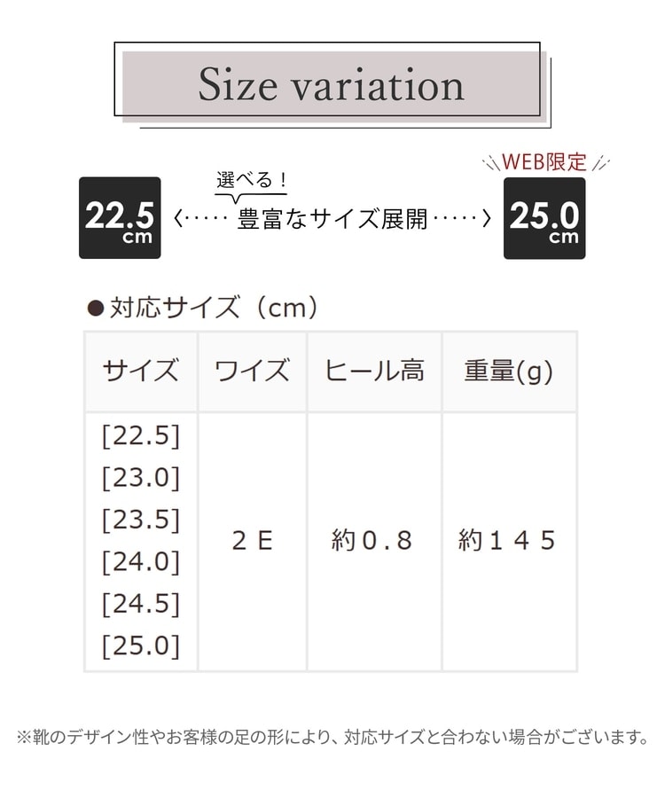 ※靴のデザイン性やお客様の足の形により、対応サイズと合わない場合がございます。