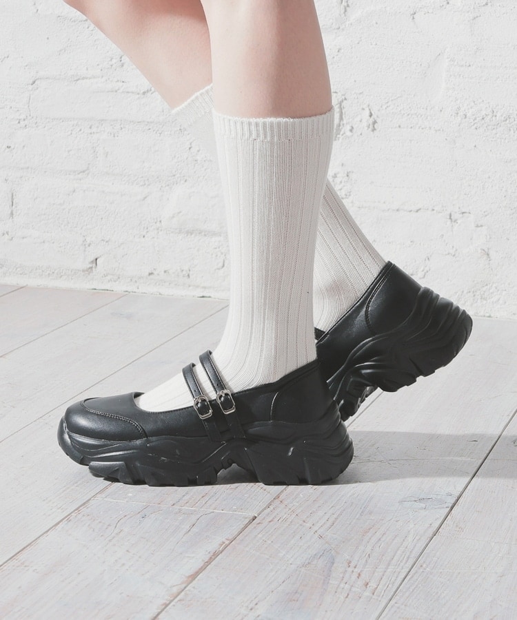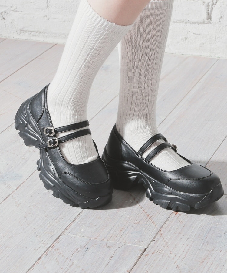 スタイルアップが叶う厚底のプラットフォームタイプ。